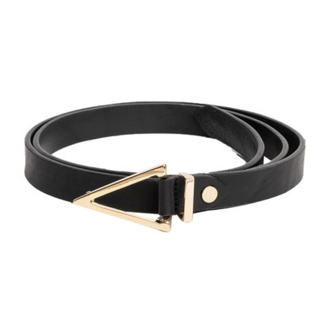Crista från RE:DESIGNED är ett smalt läderbälte tillverkat i Italien, med ett uttryck som kombinerar klassiskt hantverk och modern stil. Den spetsiga triangelformade spännet i guldfinish skapar en distinkt siluett som ger outfiten karaktär – oavsett om det bärs till byxor, klänning eller kavaj.
