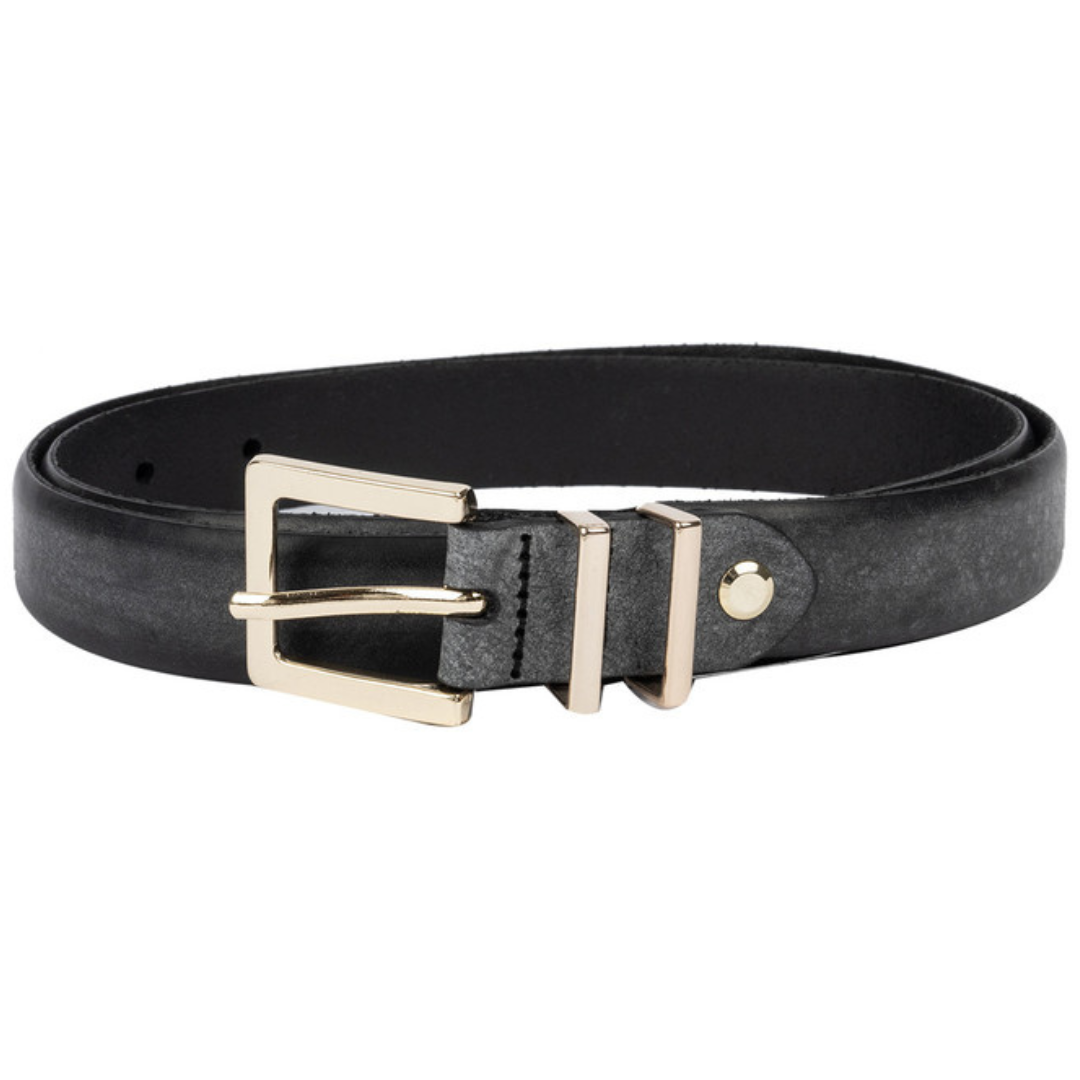 Bältet är utrustat med ett litet spänne i ljusguldfärgad metall, tillsammans med matchande bälteshållare. Det subtila metalliska inslaget skapar en fin kontrast till det naturliga lädret och adderar en känsla av lyx och elegans.