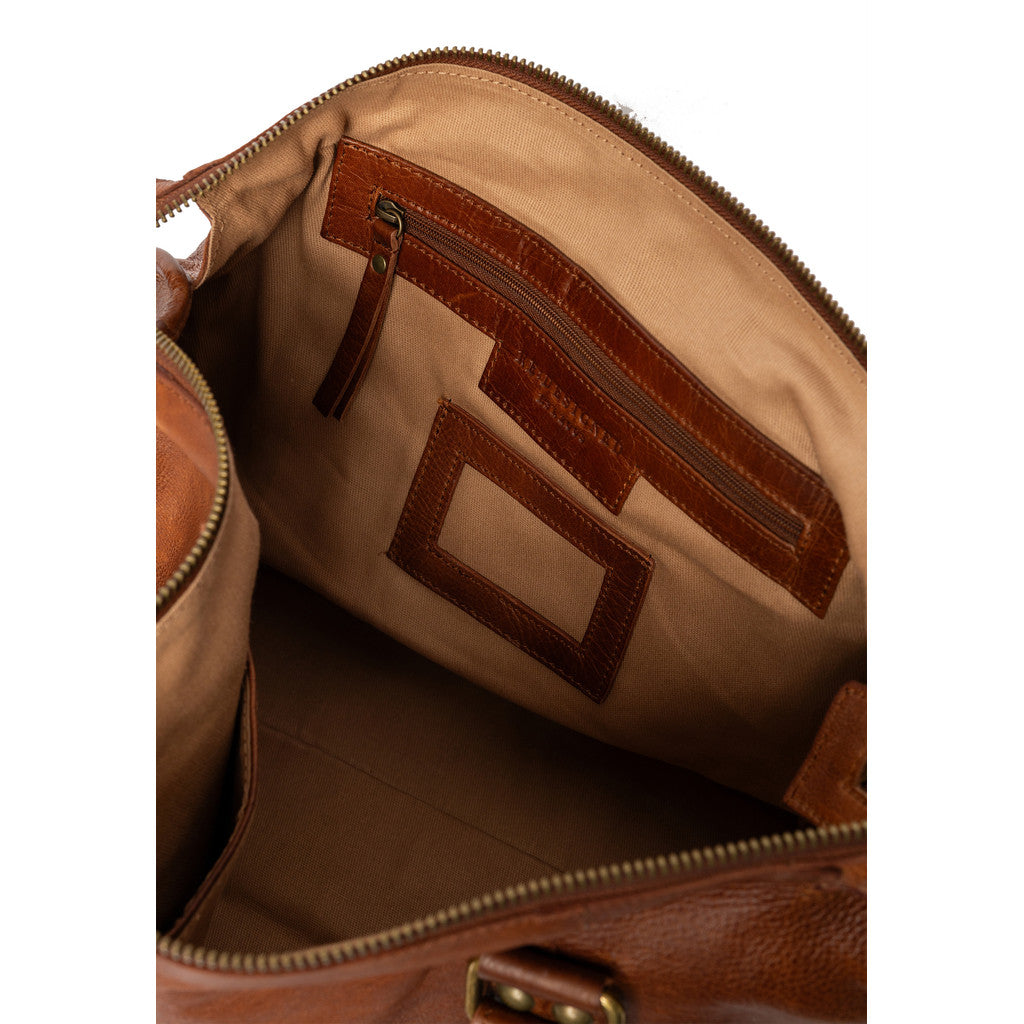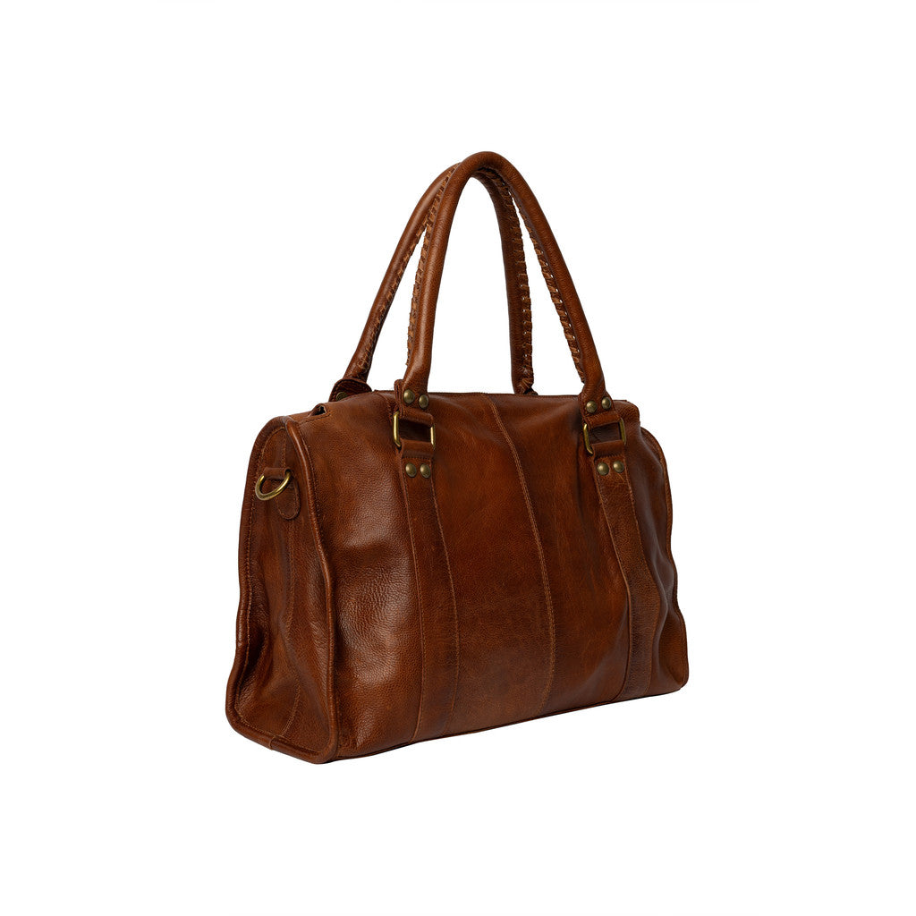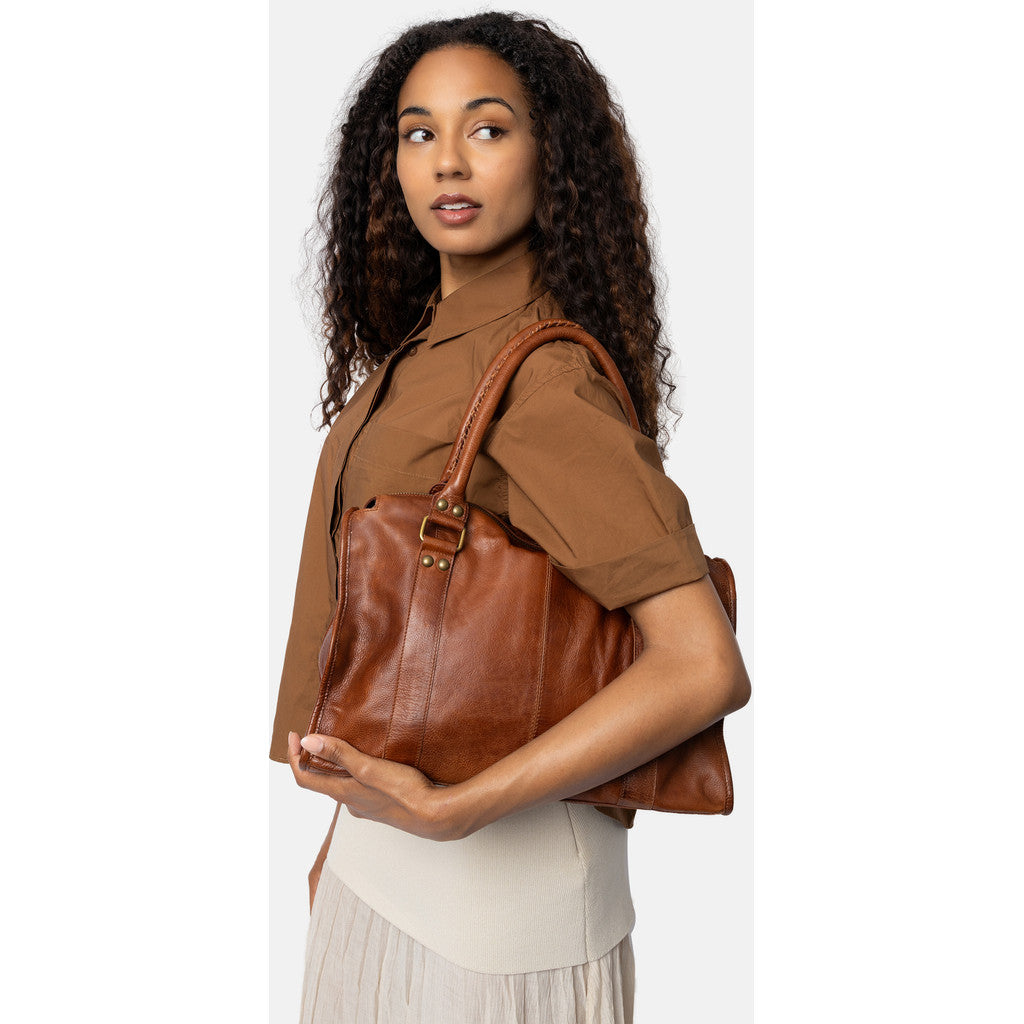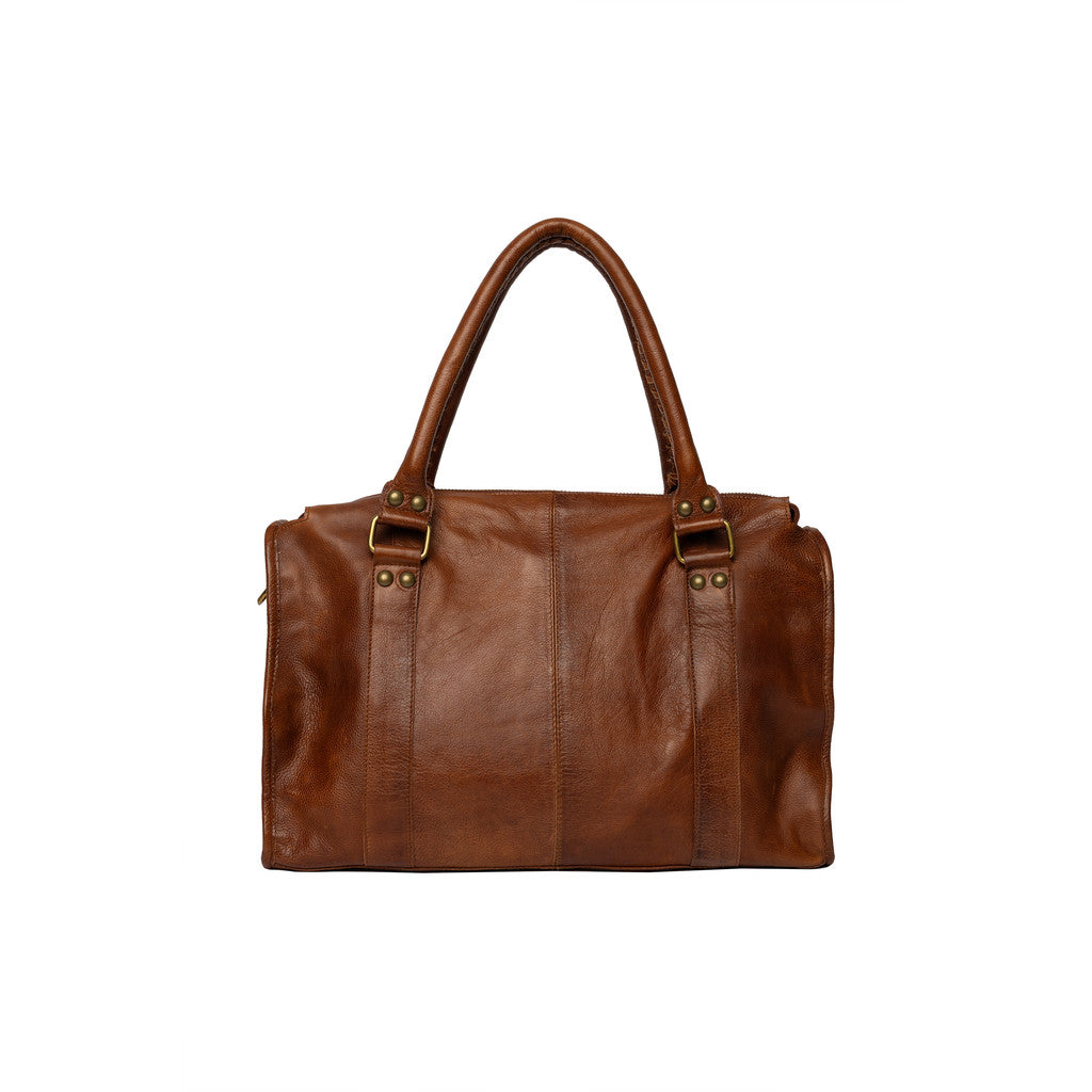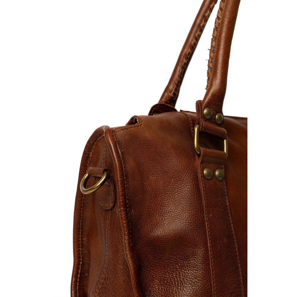 Fronten pryds av två vertikala sömmar och mässingsfärgade beslag som ger väskan ett exklusivt och robust uttryck. Spännen och nitar förstärker den genuina karaktären, samtidigt som den sofistikerade siluetten gör den lätt att matcha både till jobb och fritid. Miri 39 cm är en väska med själ och stil.
