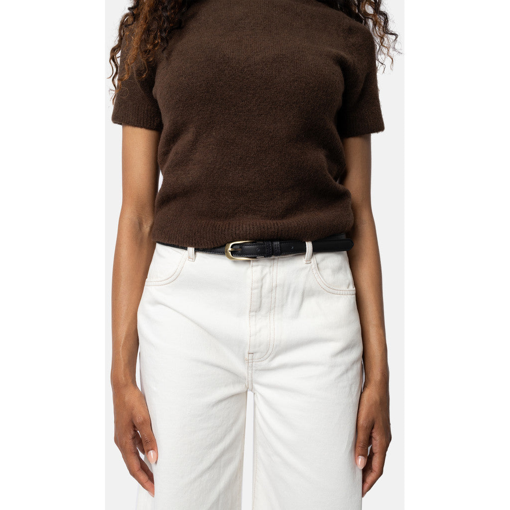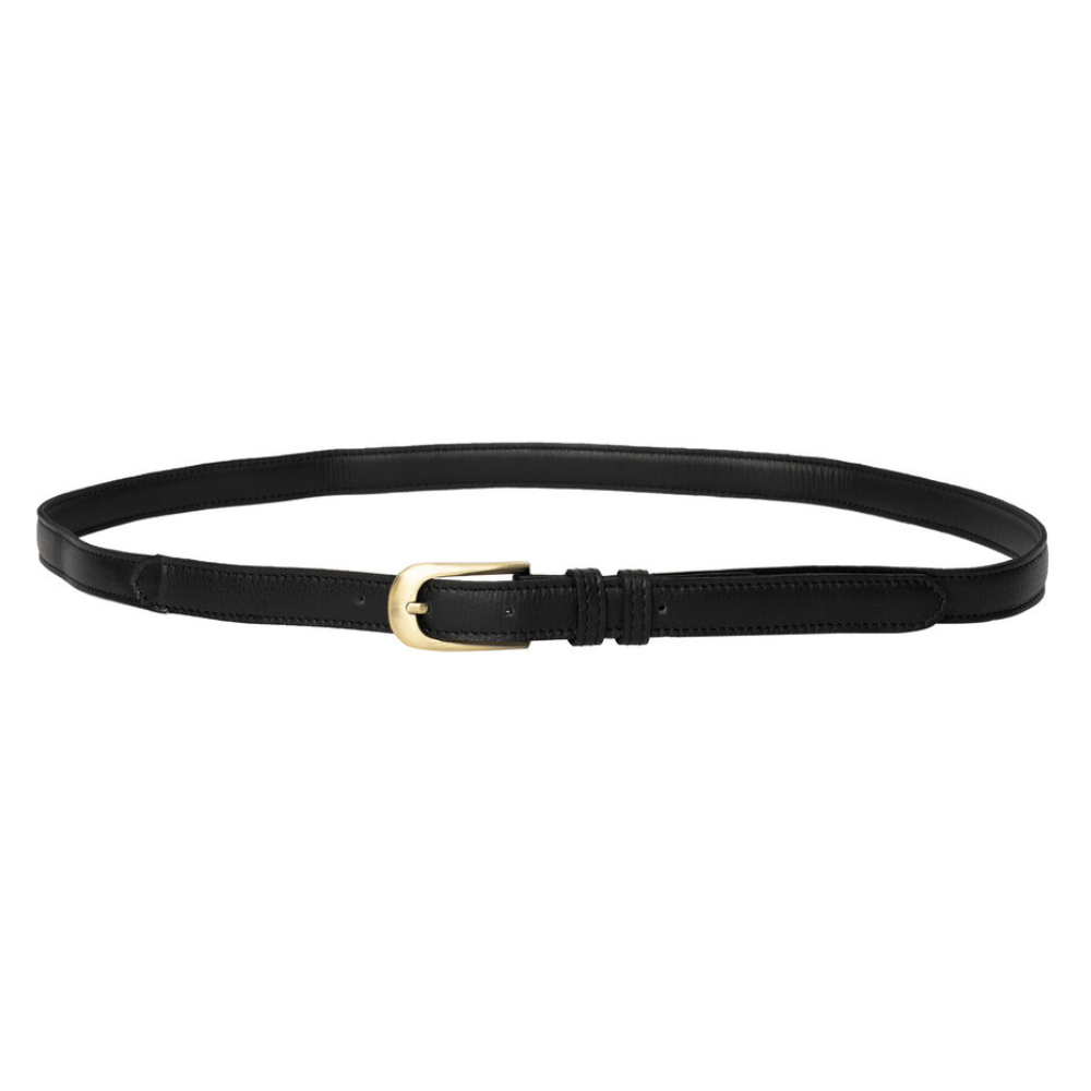 RE:DESIGNED Mona Läderbälte är ett elegant och minimalistiskt accessoarval som kombinerar klassisk stil med modern enkelhet. Bältet har en smal siluett på 2 cm som gör det perfekt för både vardag och mer uppklädda tillfällen. Den klassiska guldfärgade metallspännet tillför en sofistikerad detalj som kompletterar bältets rena uttryck. Ett perfekt val för dig som uppskattar stilrena detaljer och genuint hantverk.