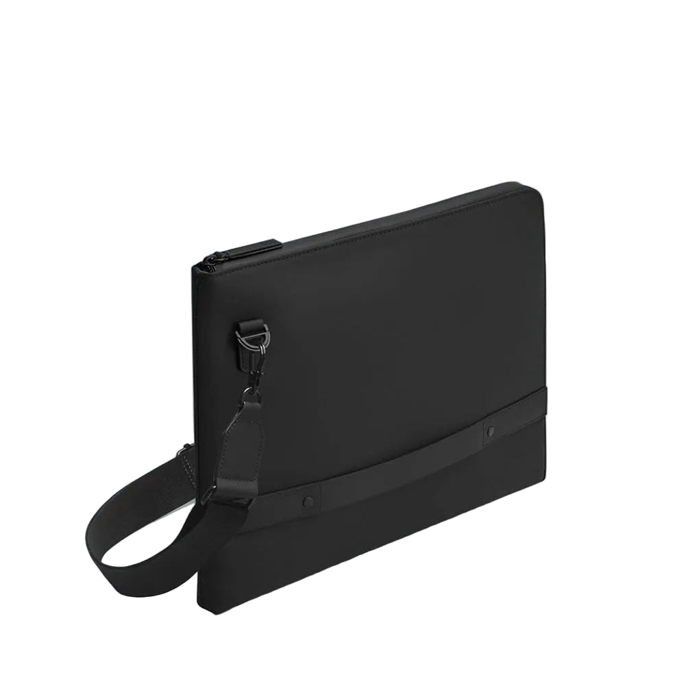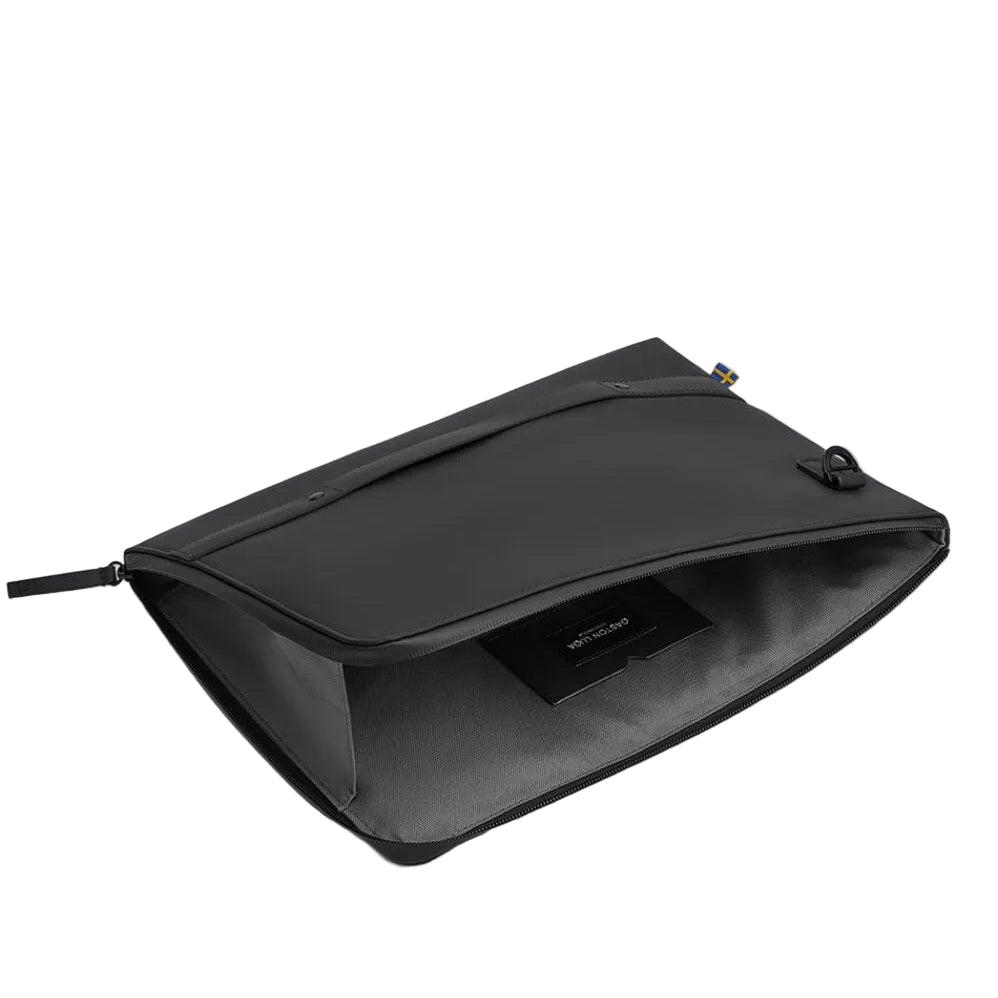 Väskan är utformad för att passa de flesta bärbara datorer mellan 11–14 tum. Den V-formade konstruktionen gör att huvudfacket kan expandera något för extra utrymme. Invändigt finns en särskild kortficka för visitkort eller mindre dokument, vilket gör väskan välorganiserad och professionell.