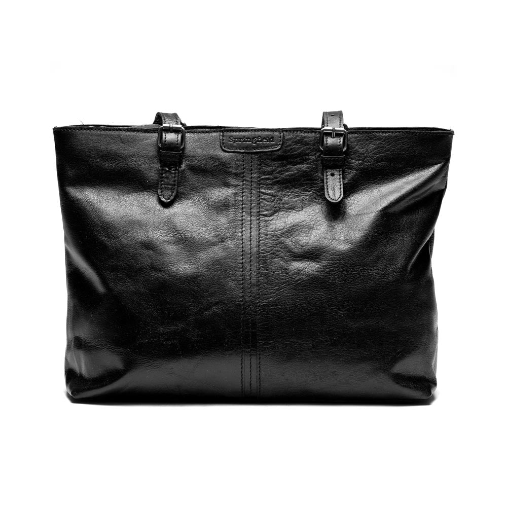 Springfield axelväska är en klassisk handväska och tote bag i 100% buffelskinn. Modellen är designad för att kombinera tidlös stil med praktisk funktion. Med måtten 42 × 28 × 13 cm har väskan en rymlig profil som passar både till vardag och arbete. På baksidan finns ett fack med dragkedja för snabb åtkomst till mindre tillhörigheter. Väskan har dubbla långa handtag som fungerar både som bärhandtag och axelremmar, vilket ger flexibilitet i bärandet. Dessutom medföljer en lång justerbar axelrem i skinn för extra komfort.