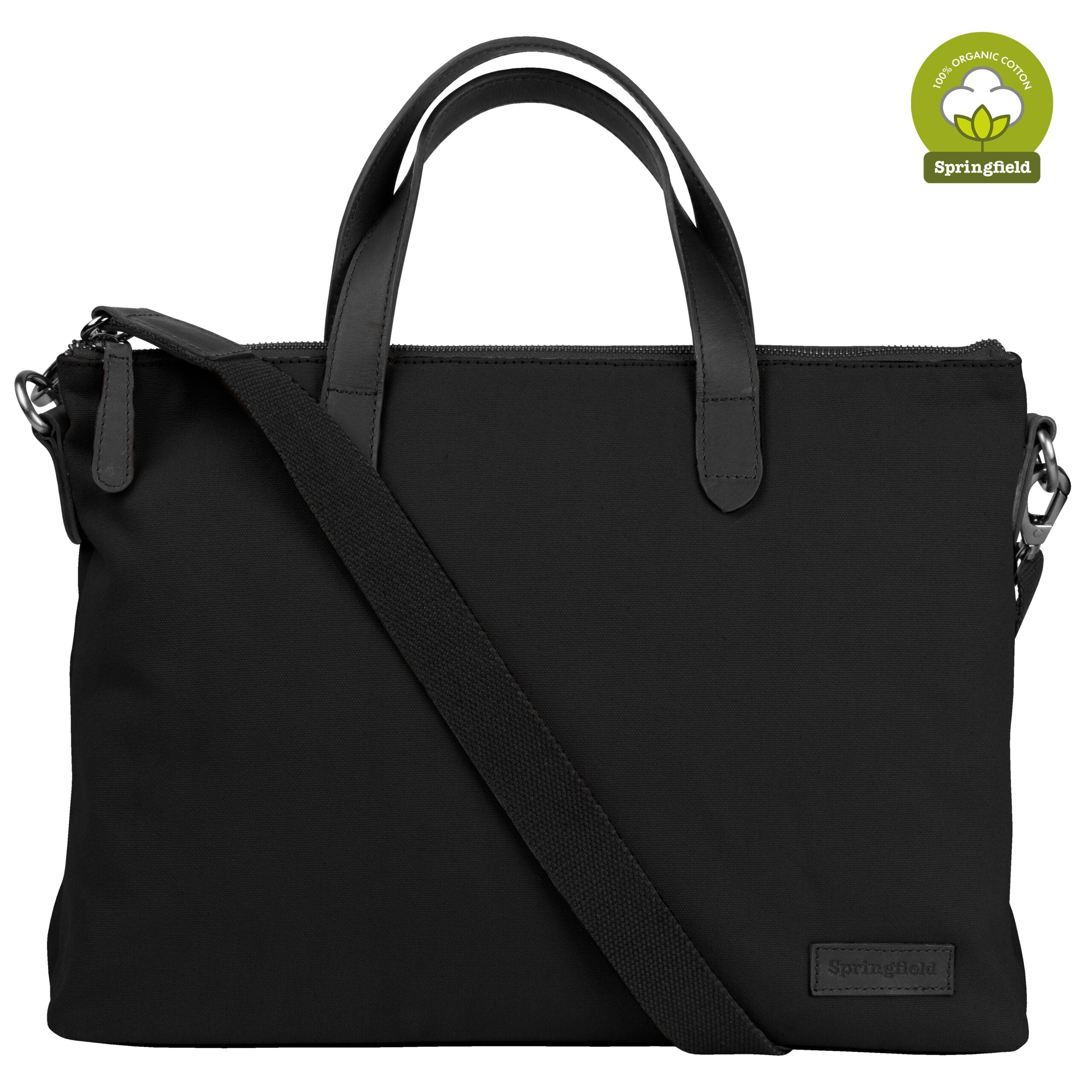 Springfield Organic axelväska är en stilren väska i 100% canvas med exklusiva detaljer i buffelskinn. Med sina mått på 41 × 29 × 8 cm är den både praktisk och lätt att bära. Väskan har dubbla handtag i skinn som ger ett bekvämt grepp samt en lång, justerbar axelrem för flexibel användning. På baksidan finns ett praktiskt fack med dragkedja för snabb åtkomst till viktiga tillhörigheter.