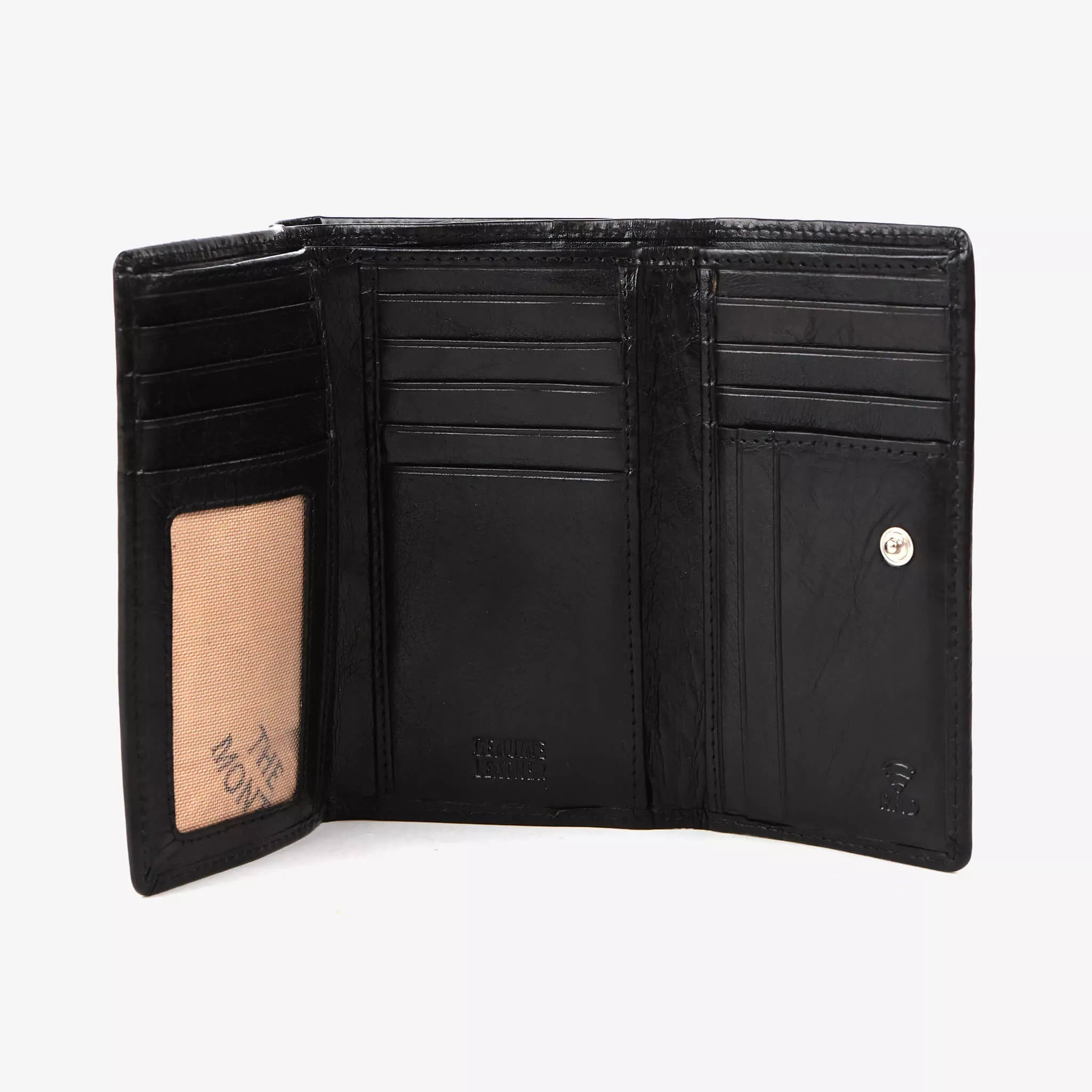 Den genomtänkta insidan erbjuder fjorton kortfack, varav ett transparent för ID-kort eller körkort. Allt är lättöverskådligt tack vare den smarta uppvikbara konstruktionen som gör att alla kort syns på ett uppslag. Dessutom finns ett stort fack för sedlar eller kvitton och fyra mindre fack för kvitton, anteckningar eller biljetter.