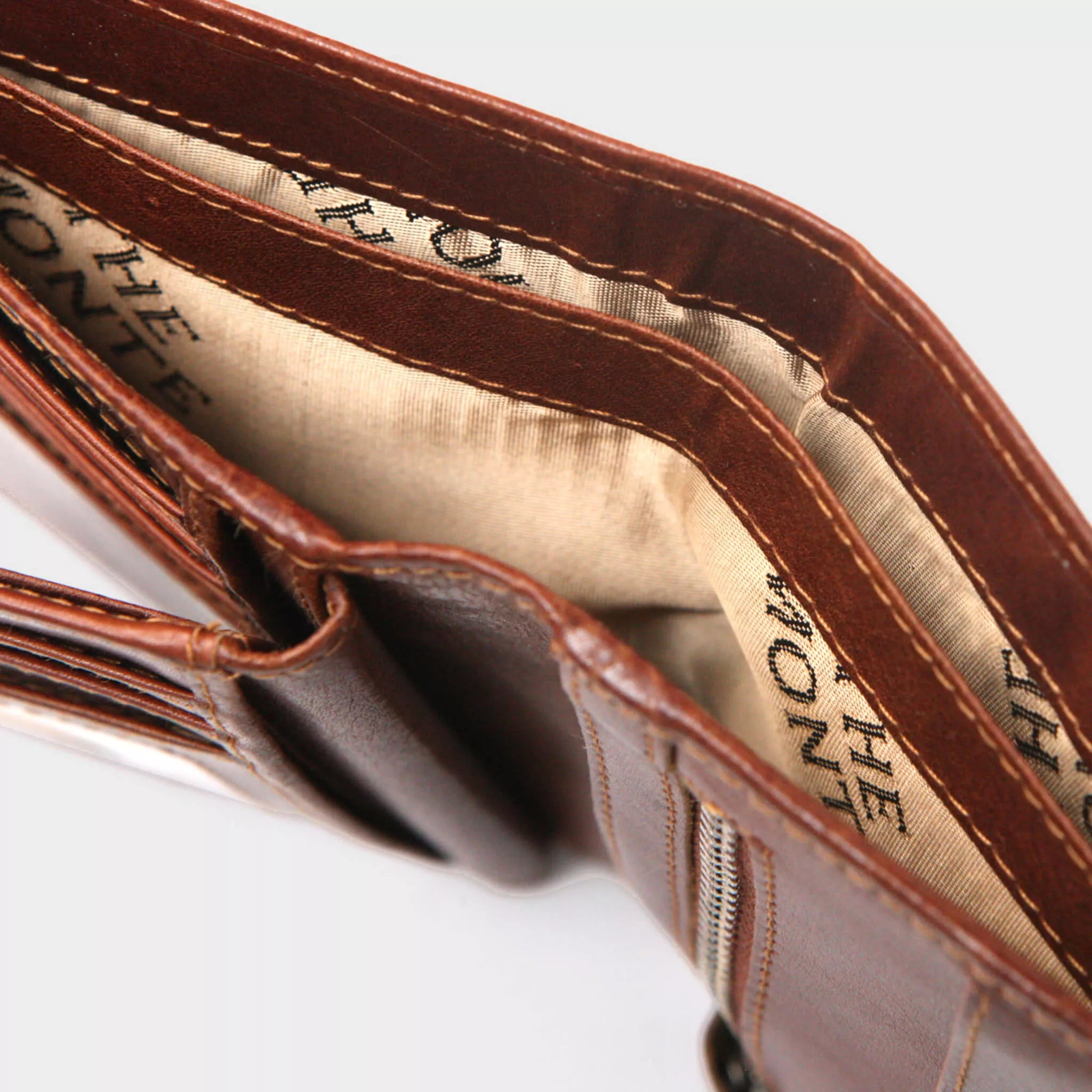 Tillverkad i vegetabiliskt garvat kalvskinn, är denna plånbok ett resultat av The Montes genuina hantverkstradition. Materialet är slitstarkt och får med tiden en unik karaktär som speglar användarens livsstil. Med måtten 13,5 × 9,5 × 2 cm erbjuder den en perfekt balans mellan rymlighet och smidighet – en plånbok som håller i många år framöver.