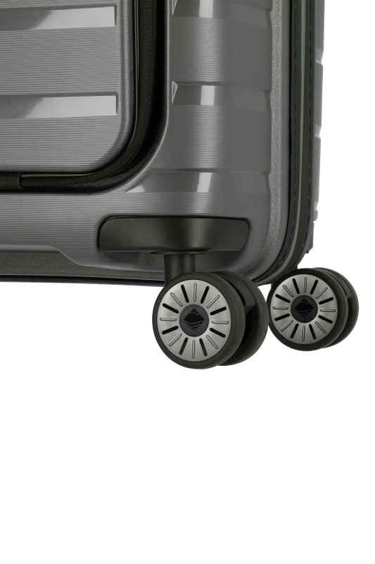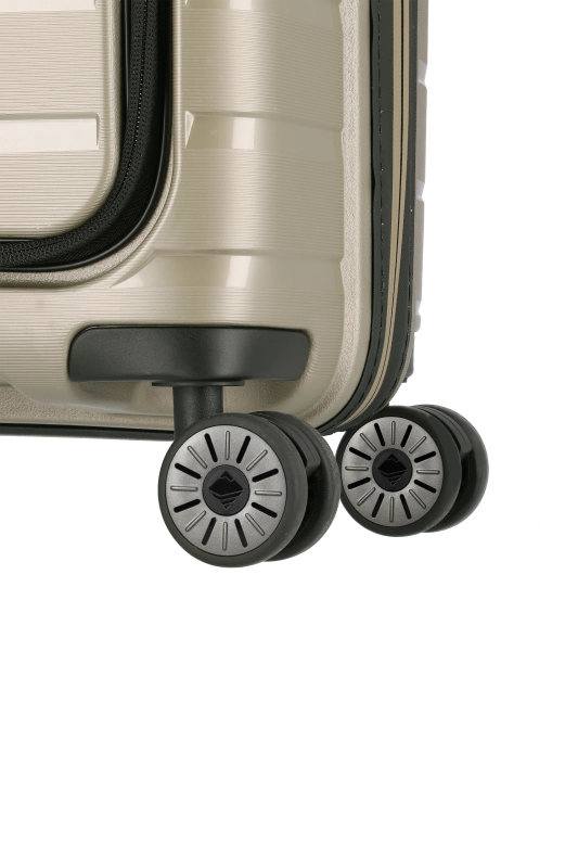 Med sina fyra tystgående, 360° dubbelhjul är denna kabinväska lätt att hantera och rulla, oavsett underlag. Den är designad för att ge en bekväm och problemfri reseupplevelse, vilket gör den till ett utmärkt val för den medvetne resenären.