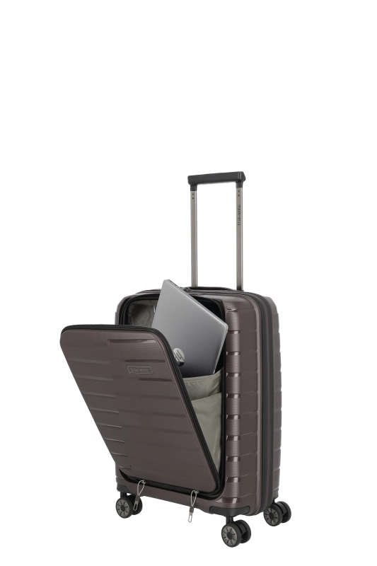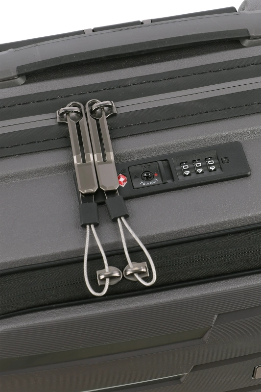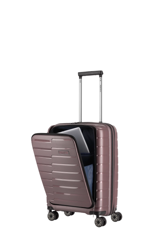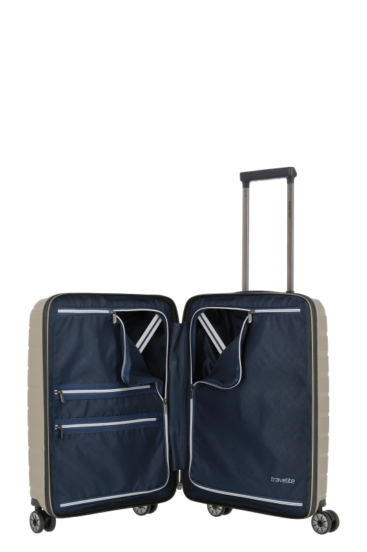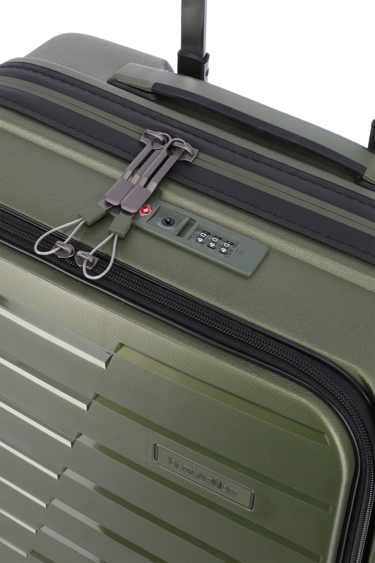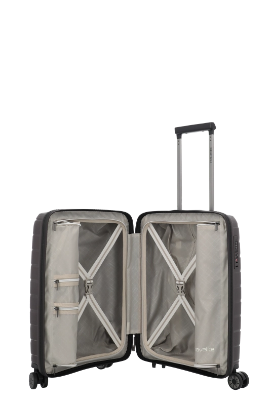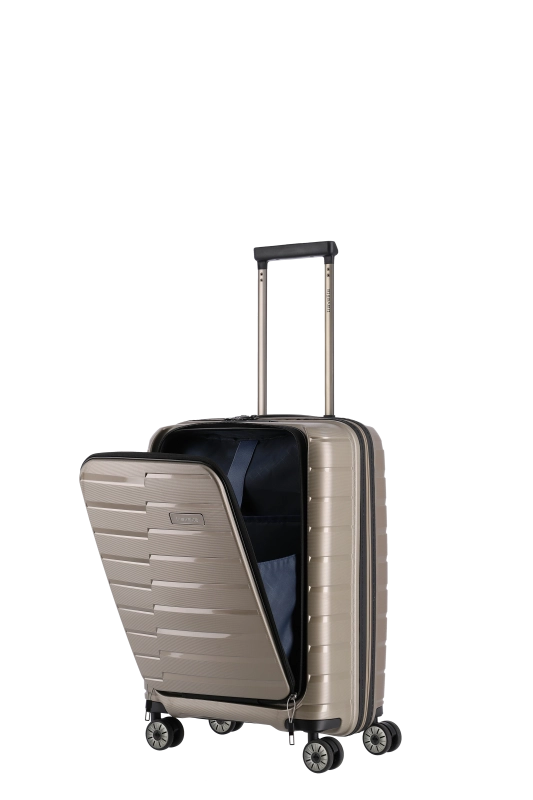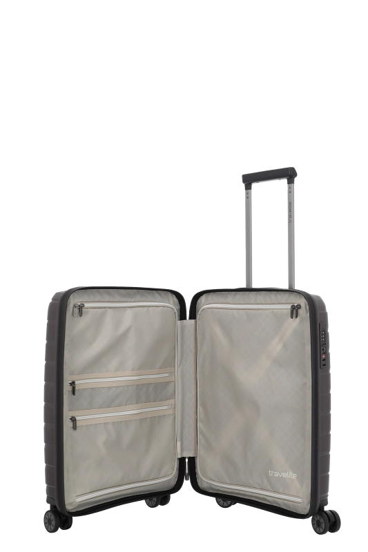 Denna hårda kabinväska från Travelite kombinerar stil och funktionalitet. Tillverkad i slitstark polypropen, erbjuder den ett bärhandtag och ett låsbart tvåvägsblixtlås för ökad säkerhet. Väskan är utrustad med ett tvåarmad låsbart teleskoprör och ett TSA-hänglås med sifferkombination, vilket gör den idealisk för smidig passage genom tullkontroller.