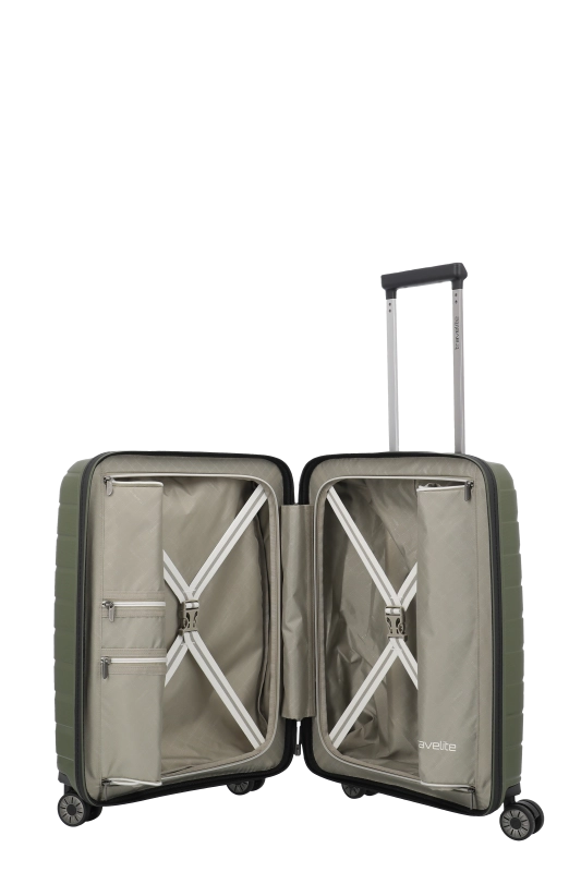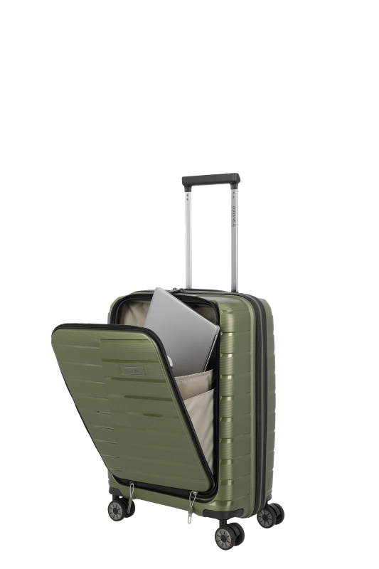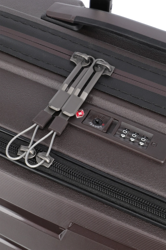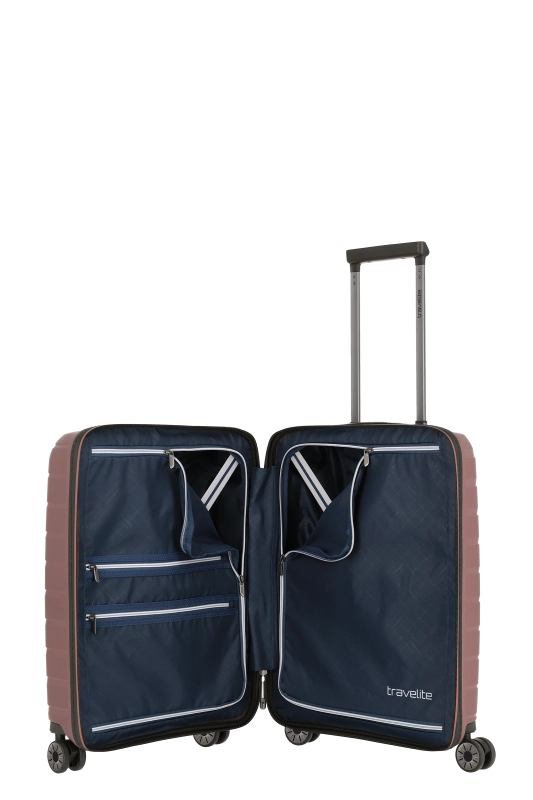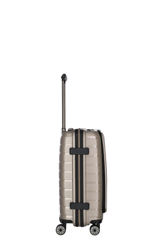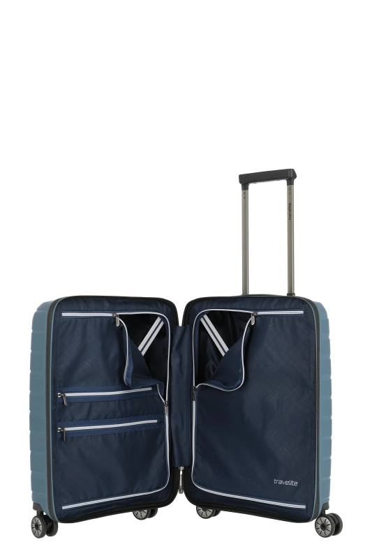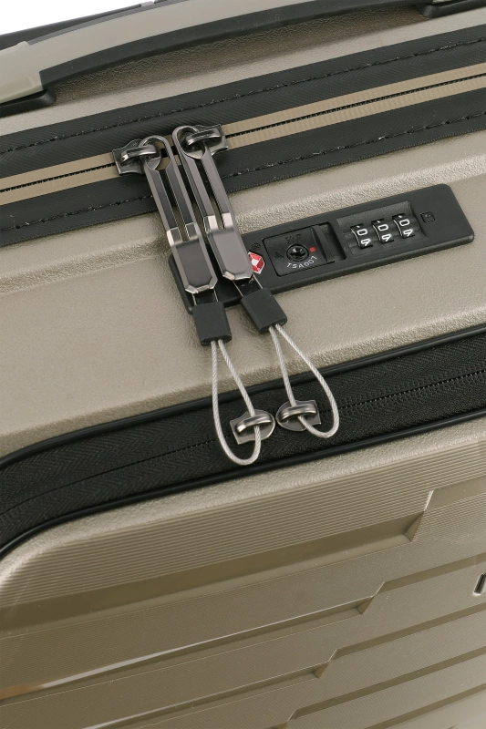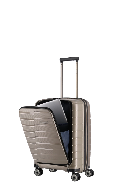 Denna hårda kabinväska från Travelite kombinerar stil och funktionalitet. Tillverkad i slitstark polypropen, erbjuder den ett bärhandtag och ett låsbart tvåvägsblixtlås för ökad säkerhet. Väskan är utrustad med ett tvåarmad låsbart teleskoprör och ett TSA-hänglås med sifferkombination, vilket gör den idealisk för smidig passage genom tullkontroller.