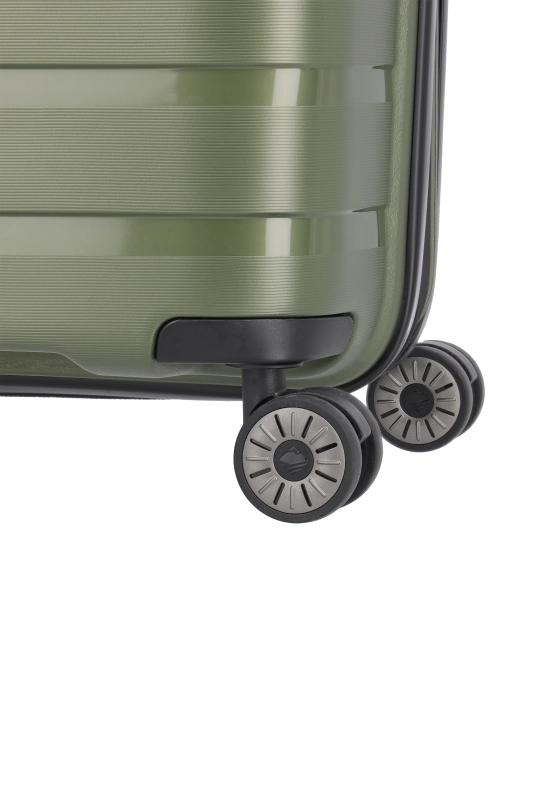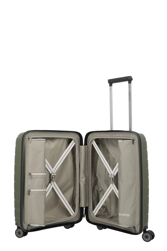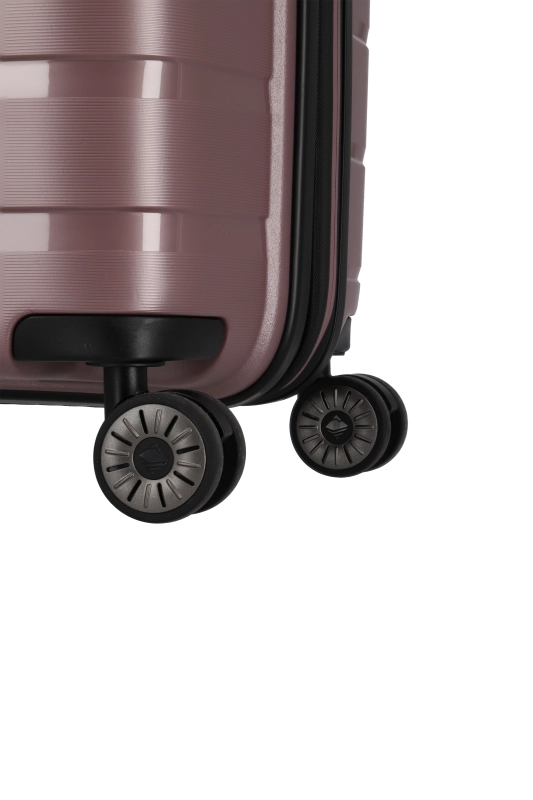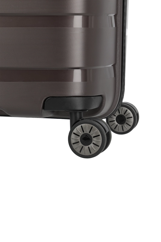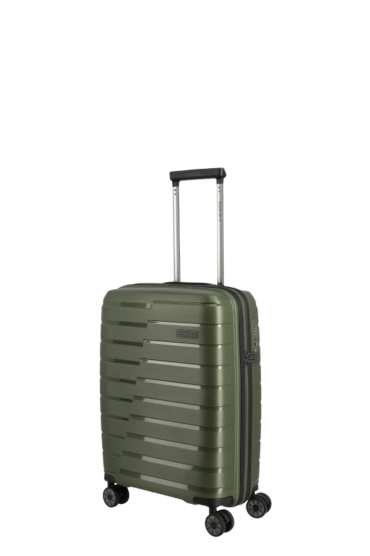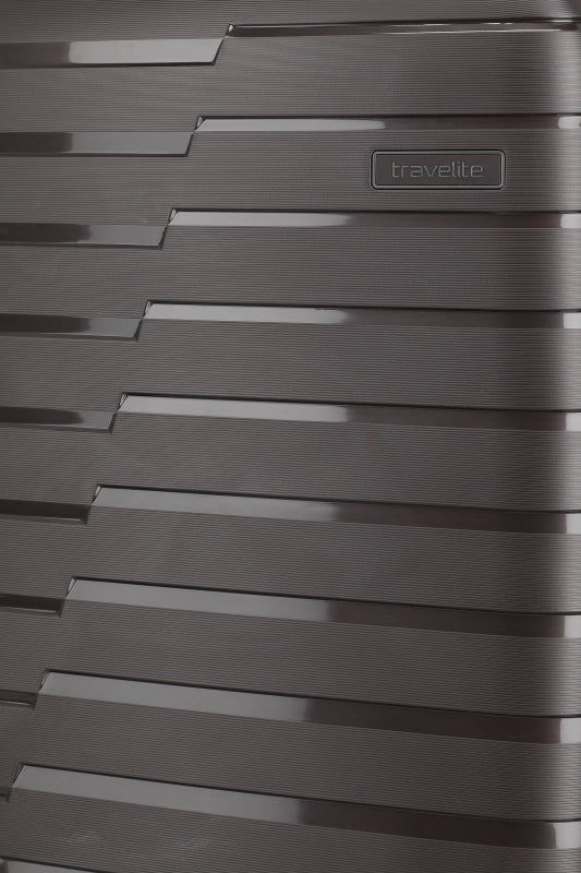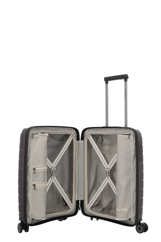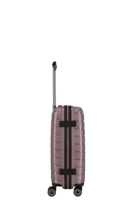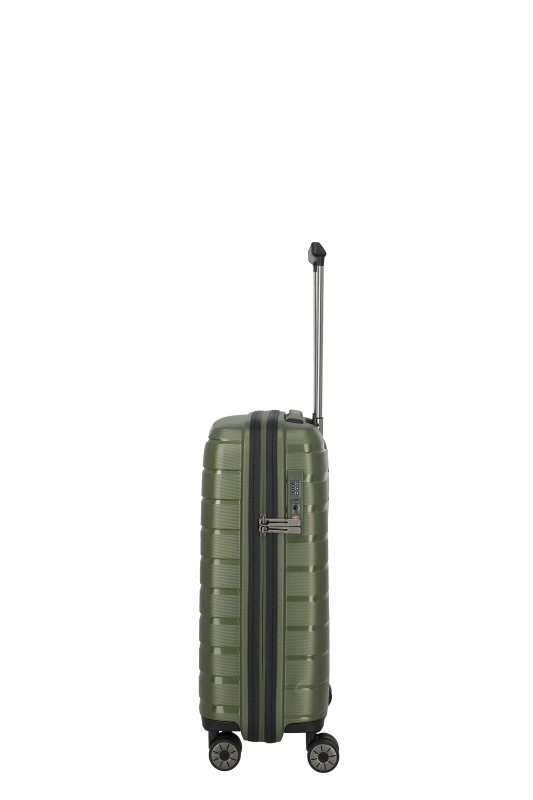 Denna hårda kabinväska från Travelite erbjuder en robust och stilren design i polypropen. Med ett bärhandtag och ett vattentätt, låsbart tvåvägsblixtlås, säkerställs både skydd och säkerhet under resan. Väskan är utrustad med ett tvåarmad låsbart teleskoprör och ett TSA-kombinationslås, vilket underlättar vid bagagekontroll. De fyra 360° tystgående dubbelhjulen bidrar till enkel manövrering, vilket gör den idealisk för smidiga förflyttningar.