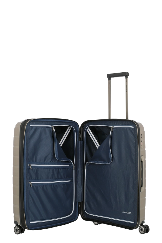 Denna resväska från Travelite är tillverkad av slitstarkt polypropen, vilket ger en robust och hållbar yttre design. Med ett praktiskt sidhandtag och ett låsbart tvåvägsblixtlås erbjuder den både enkel hantering och extra säkerhet. Det inbyggda TSA-kombinationslåset gör den idealisk för resor till USA. Väskan kan dessutom expanderas för att ge extra packutrymme vid behov.