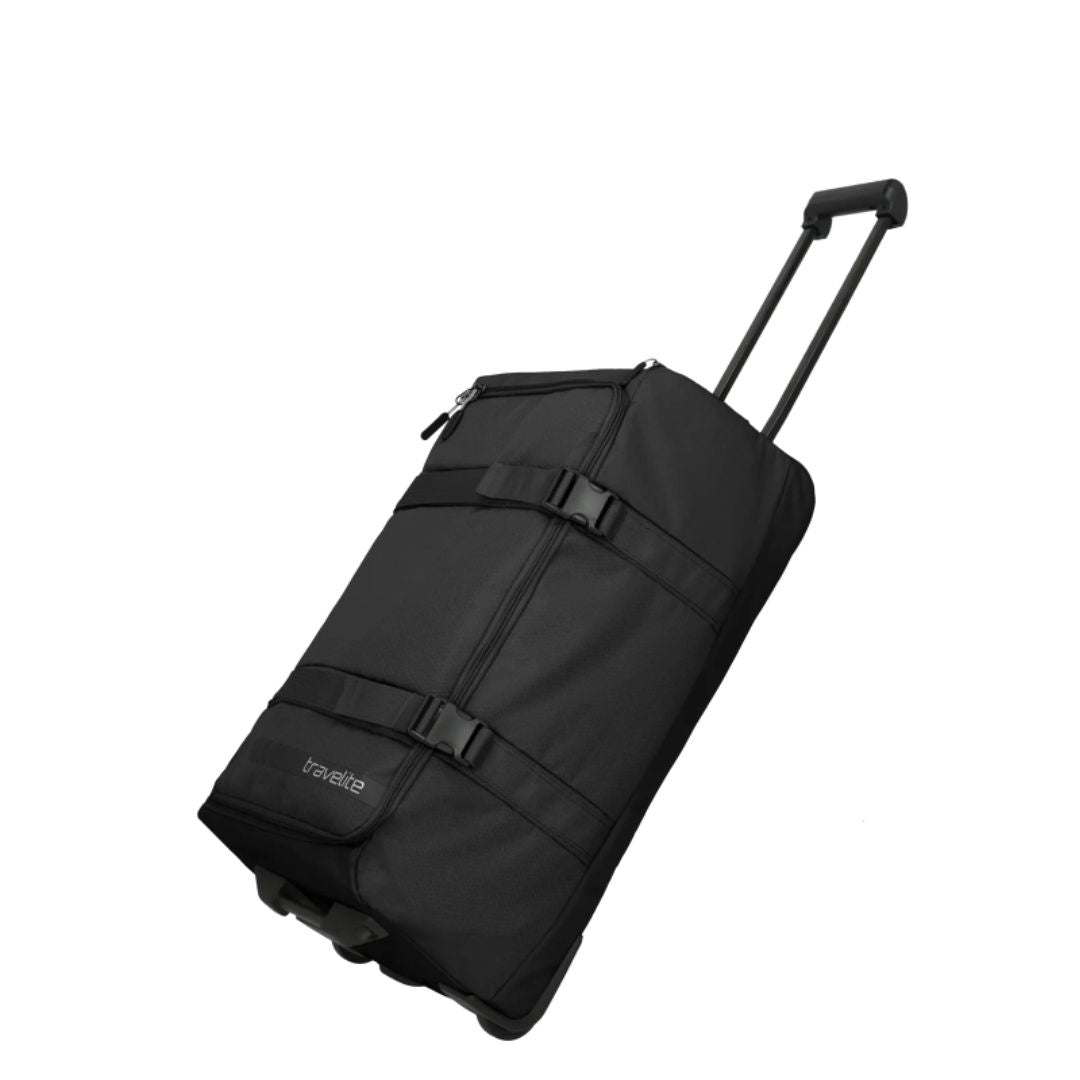 Travelite Kick Off Large är en rymlig och tålig duffelväska med hjul, framtagen för både sport och fritid. Väskan är en del av den populära Kick Off-kollektionen, känd för sin praktiska design och slitstarka konstruktion. Den är tillverkad i hållbart polyester som står emot både smuts och slitage, vilket gör den idealisk för resor, träning eller helgutflykter. Den sportiga designen kombinerar funktionalitet med en modern, avslappnad stil som passar lika bra på flygplatsen som på väg till gymmet.
