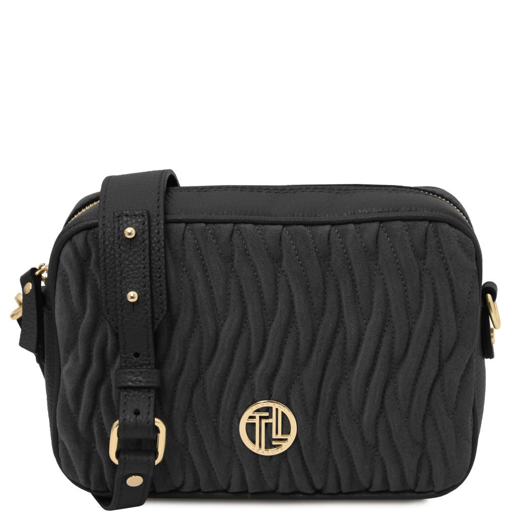 Tuscany Leather Chantilly är en sofistikerad axelremsväska i en kombination av pebbled leather och mocka. Den halvstyva strukturen ger väskan en elegant form som håller sig över tid, medan de skyddande metallfötterna på botten både bidrar till hållbarhet och förhöjer den exklusiva känslan. Den diskreta TL-logotypen i metall och den guldfärgade hårdvaran förstärker väskans stilrena uttryck.