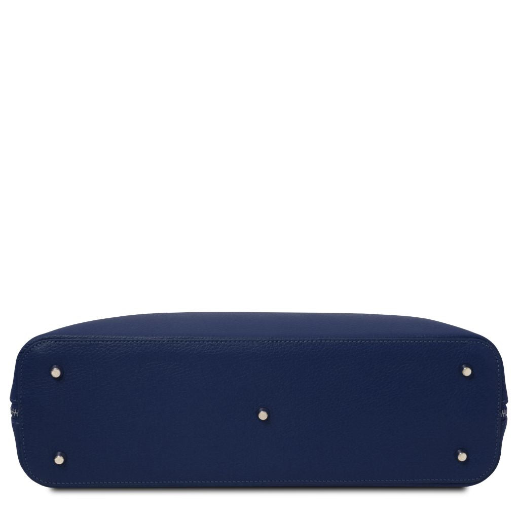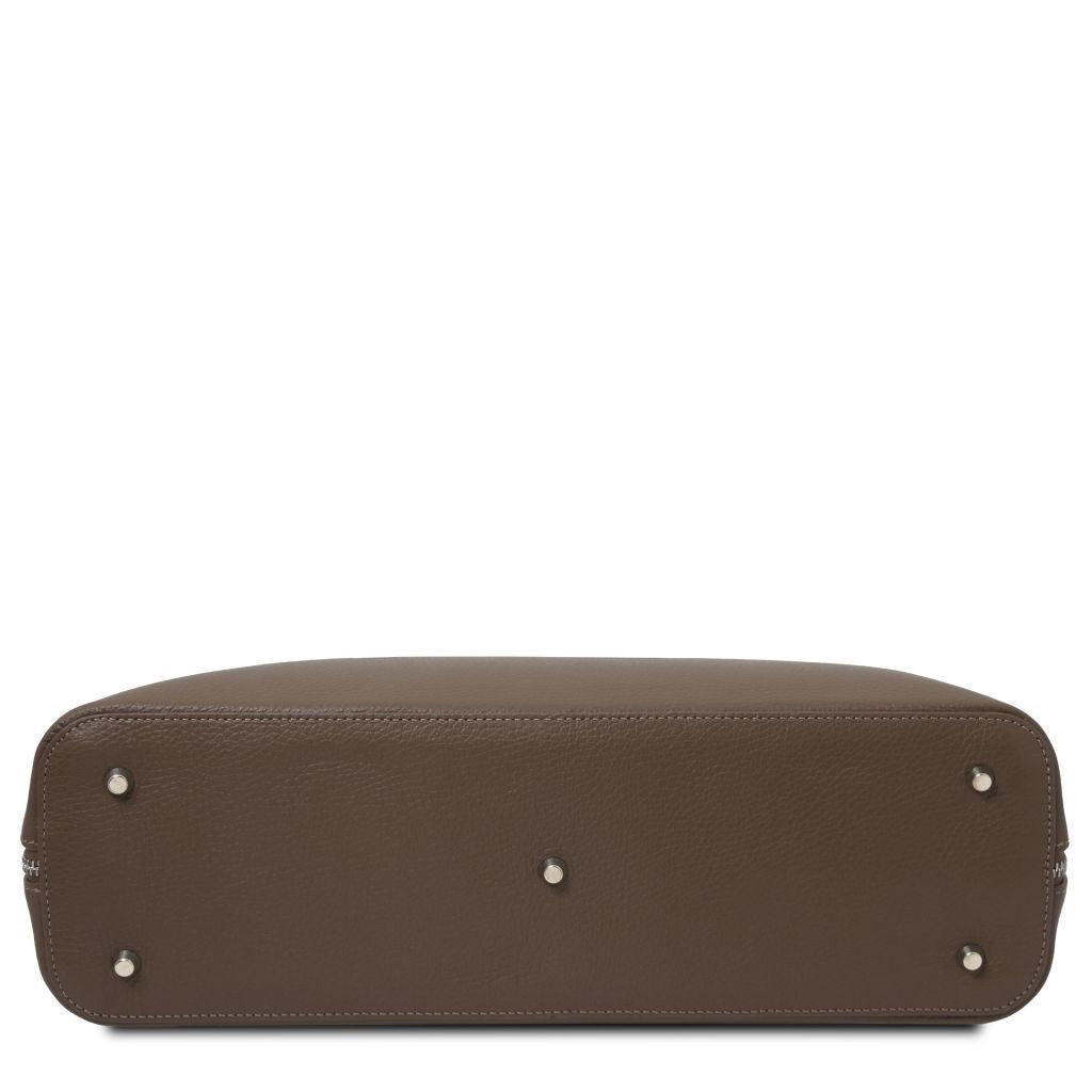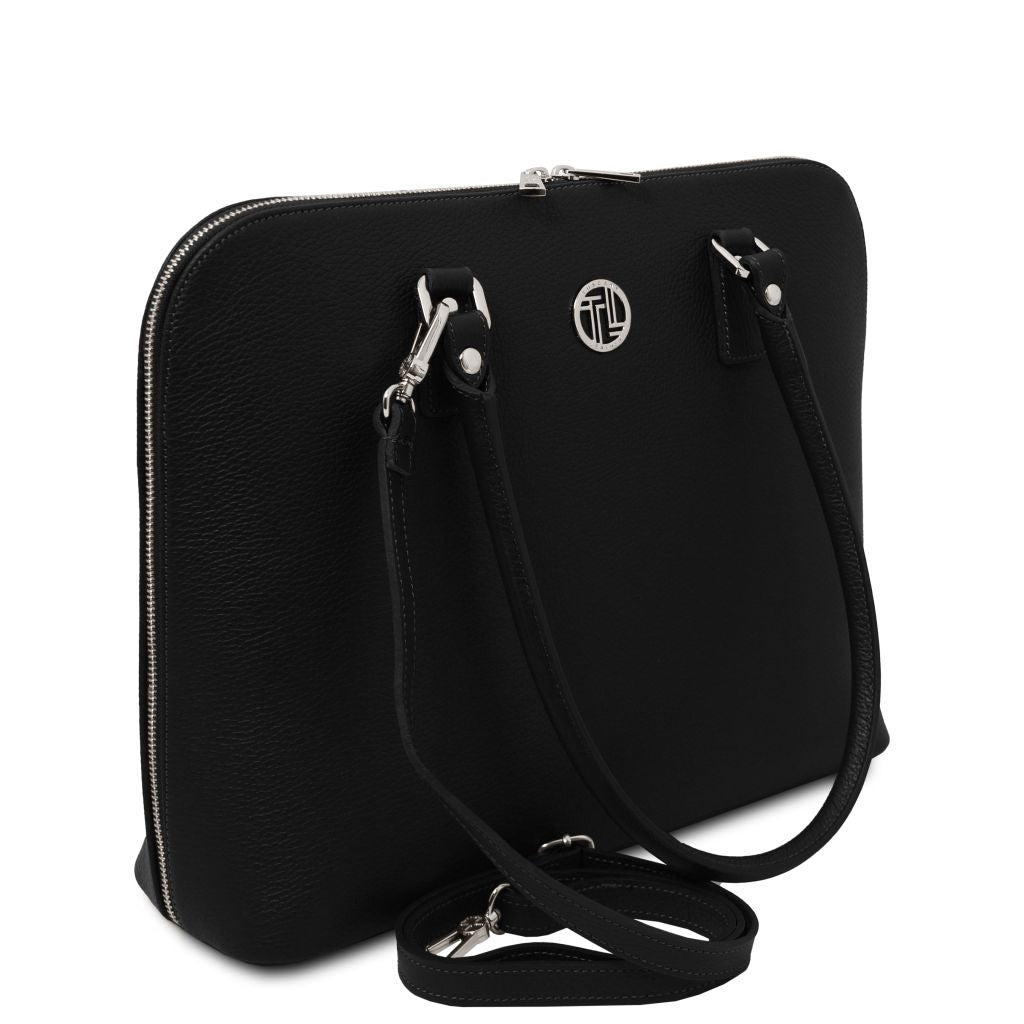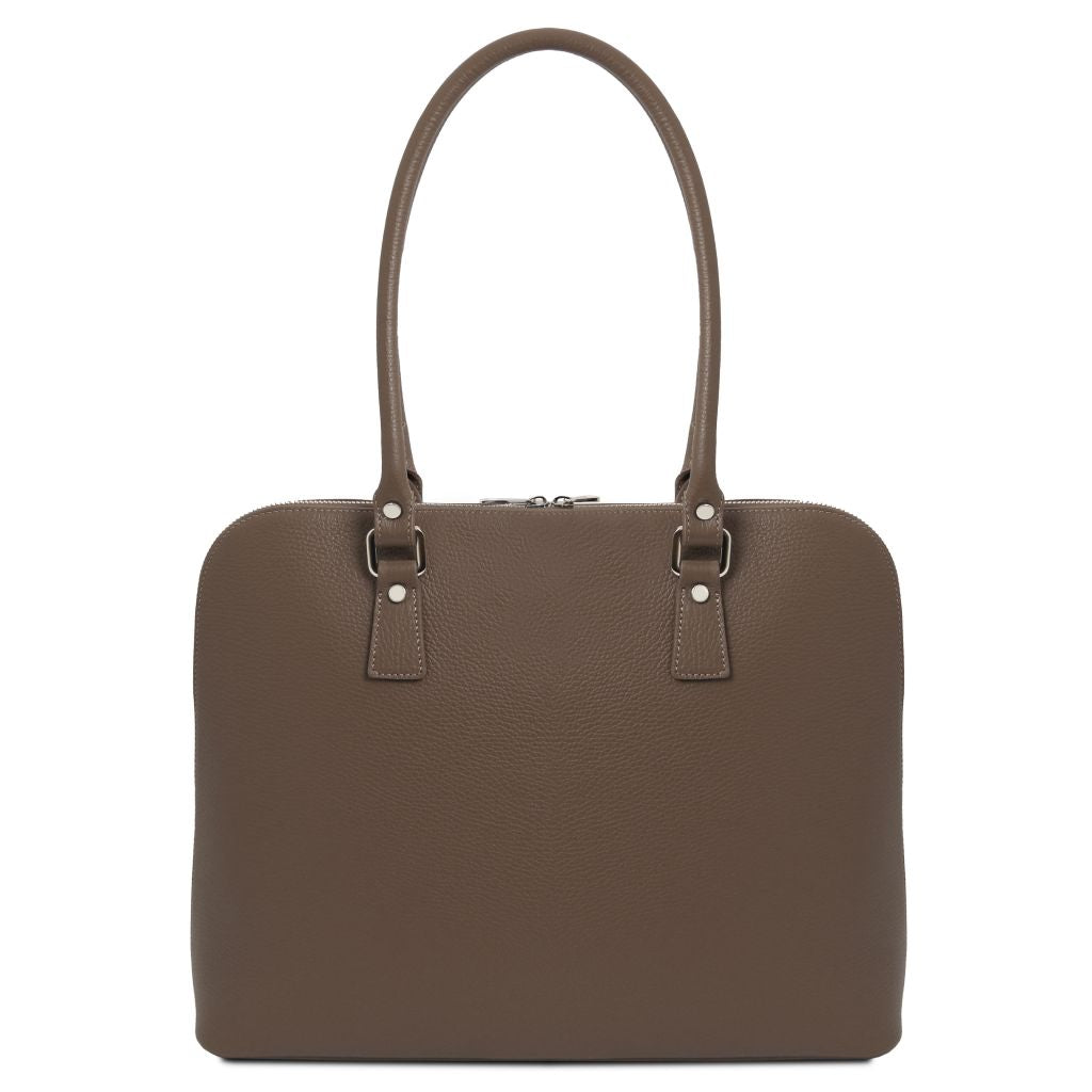 Tuscany Leather Magnolia är en sofistikerad businessväska för kvinnor, tillverkad i pebble-grain läder med en halvmjuk struktur som ger både form och flexibilitet. Den klassiska designen kombinerar professionell elegans med moderna detaljer, som en diskret metallogo på framsidan och skyddande metallfötter undertill. Väskan passar perfekt både till kontoret och vid affärsresor.