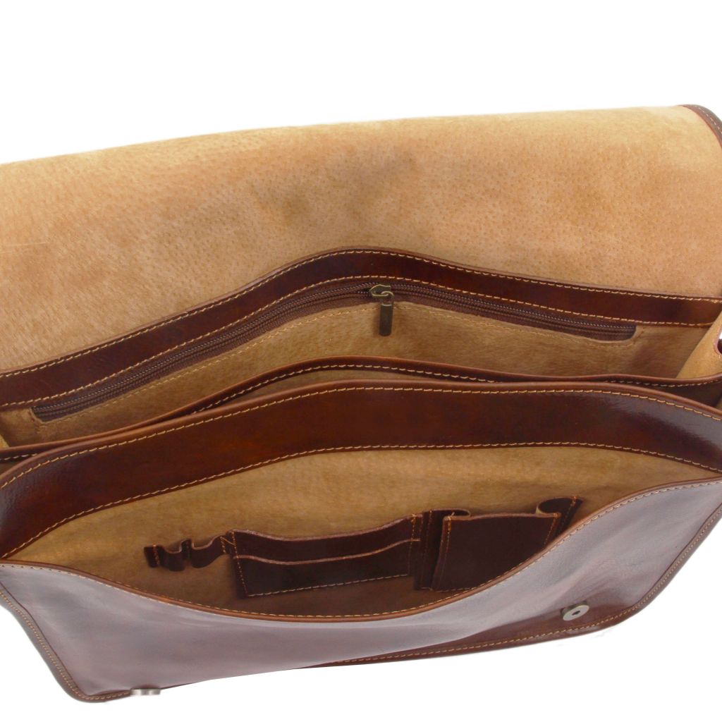 Tuscany Leather Messenger Double är en elegant och funktionell väska tillverkad i full grain vegetabilgarvat läder som handfärgats för att framhäva materialets naturliga struktur. Den mjuka konstruktionen ger väskan en flexibel och följsam form, medan den diskreta metalloggan på framsidan skapar ett sofistikerat uttryck. En tidlös messenger som passar både arbete och vardag.