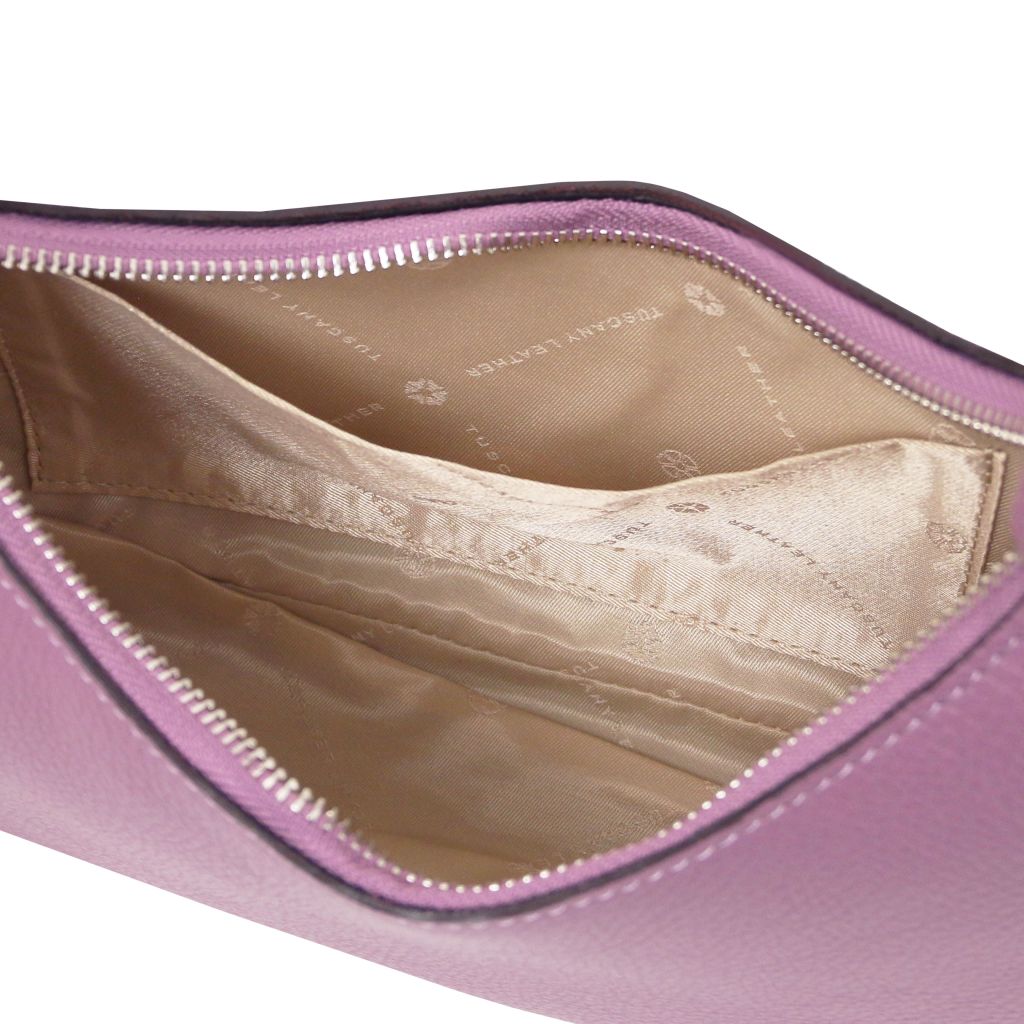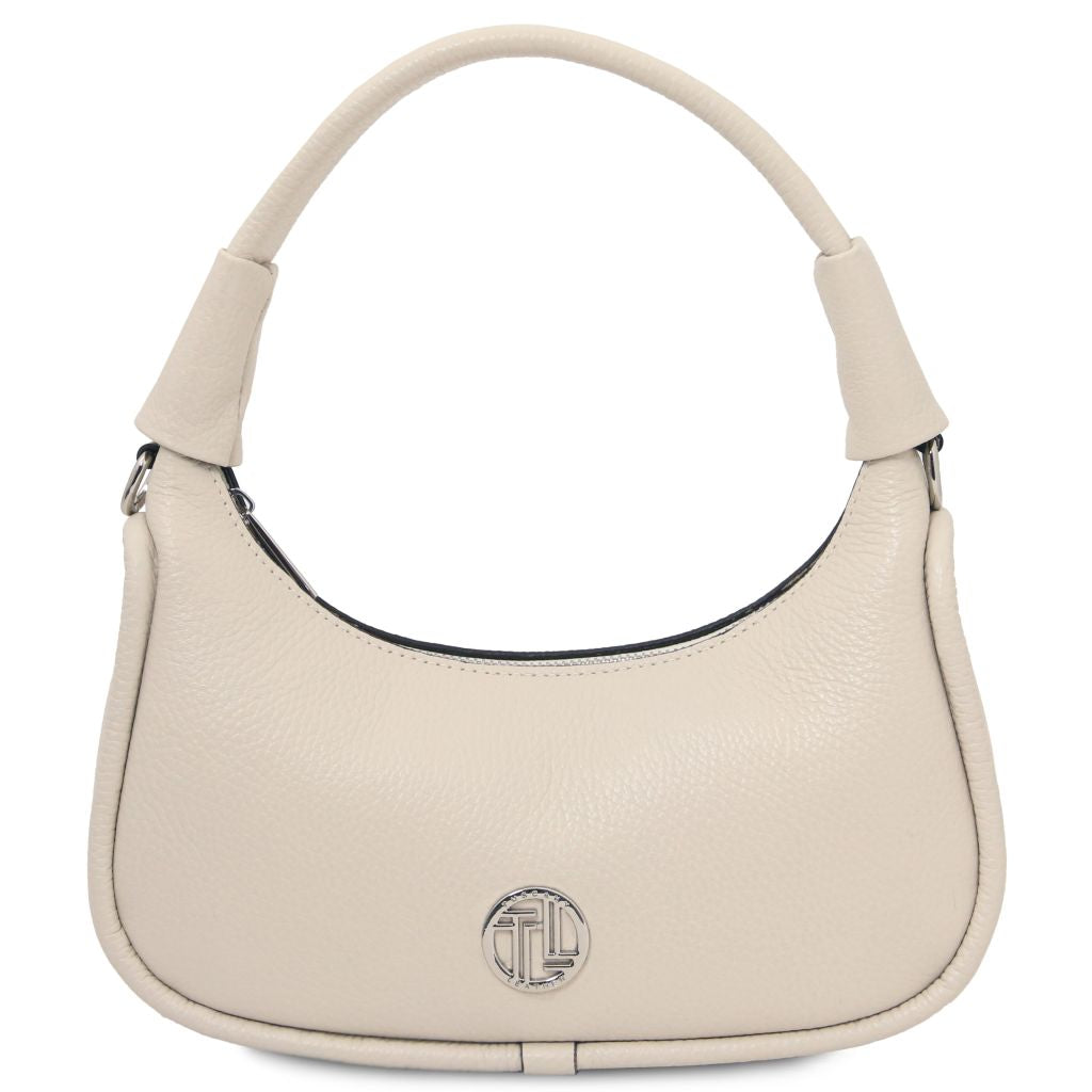 Tuscany Leather Michelle Small är en stilren handväska tillverkad i pebble-grain läder med en halvmjuk struktur som ger en elegant och följsam form. Väskan har en minimalistisk design med metallogo på framsidan och silverfärgad hårdvara som skapar ett sofistikerat uttryck. En kompakt modell som passar lika bra till vardag som till fest.