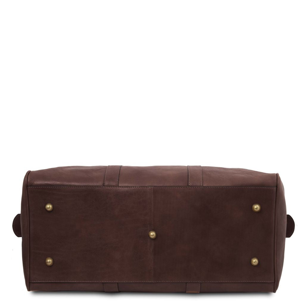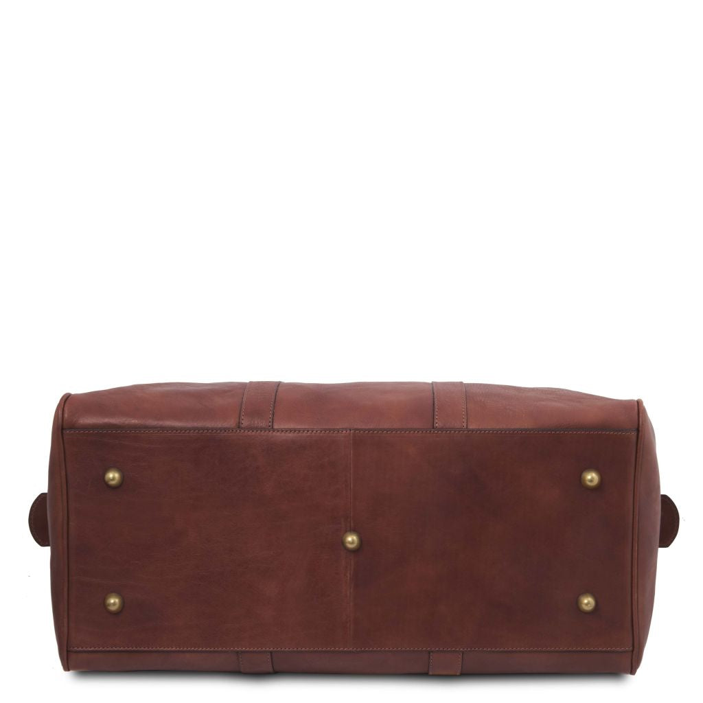 Tuscany Leather Oslo är en elegant weekendväska tillverkad i matt full grain vegetabilgarvat läder som handfärgats för att framhäva lädrets naturliga struktur. Den mjuka konstruktionen ger väskan en följsam form och en exklusiv känsla, medan detaljer som metallogo och hårdvara i borstad mässing bidrar till ett sofistikerat helhetsintryck. En perfekt kombination av italienskt hantverk och praktisk design.