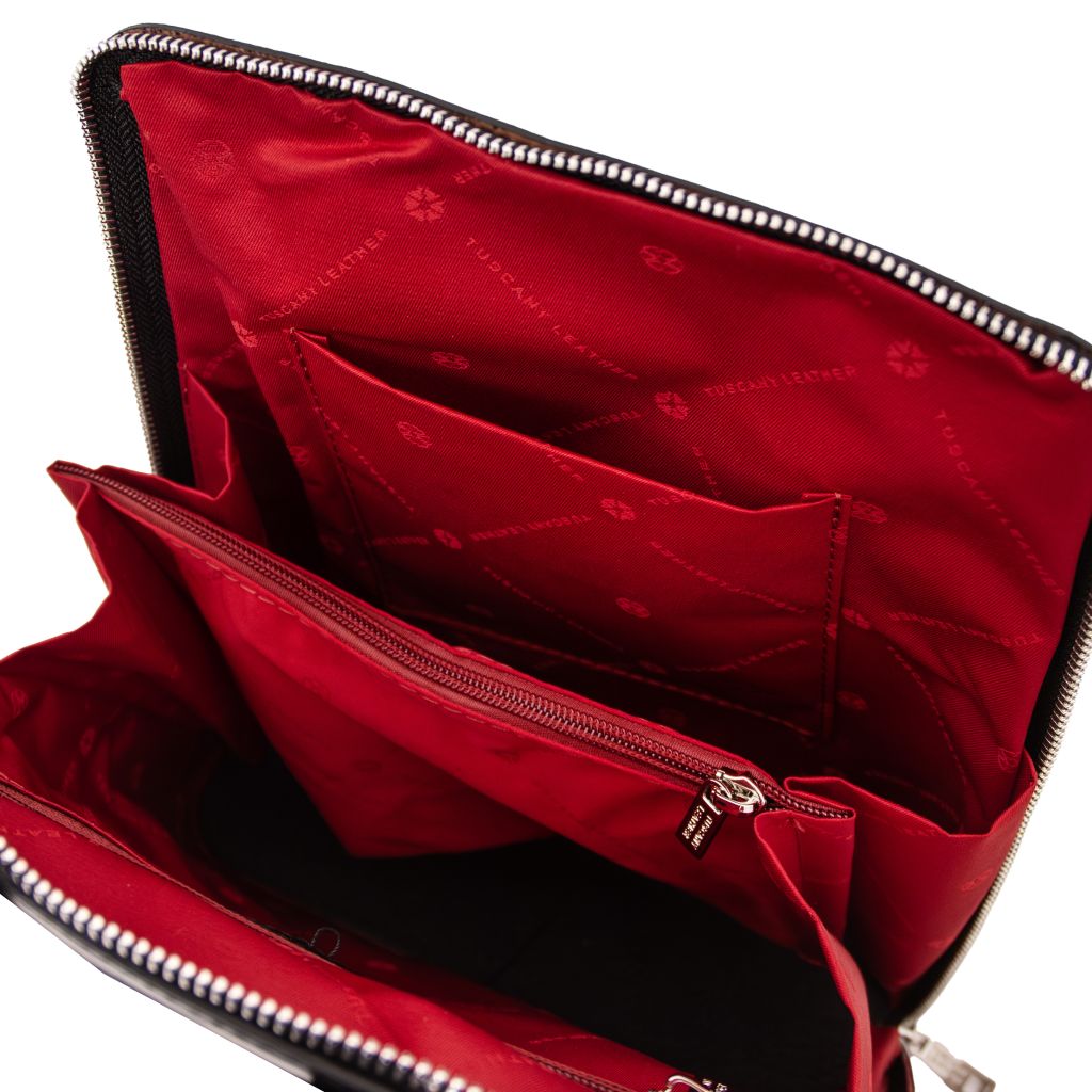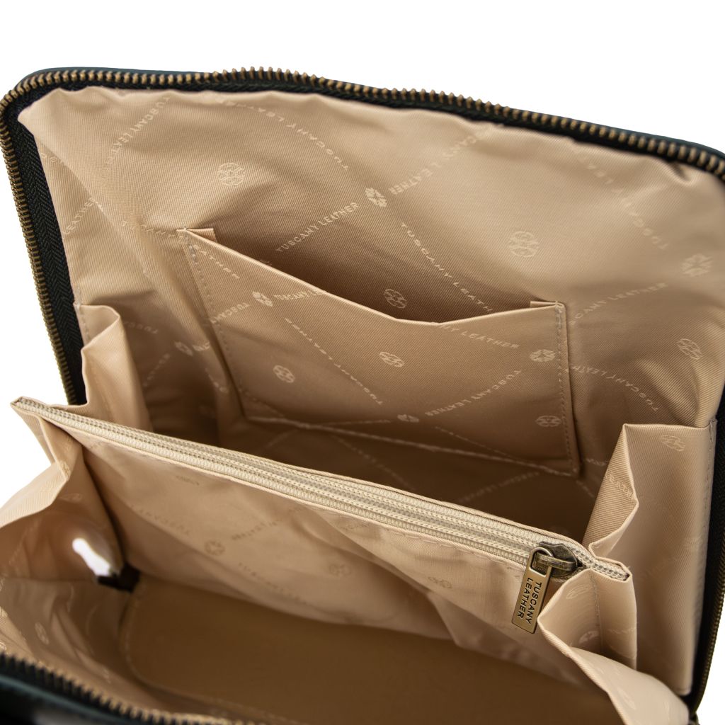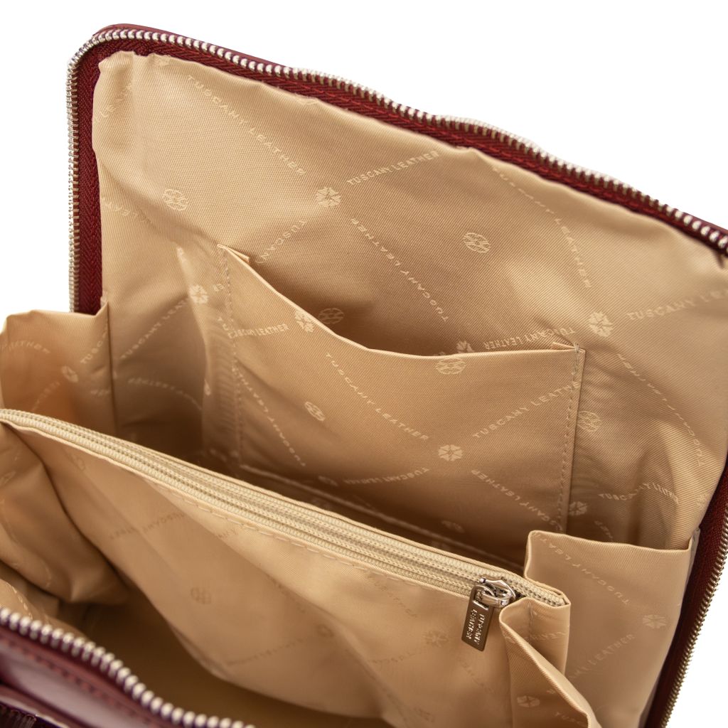 Med måtten 23,5 x 28 x 9,5 cm erbjuder Tuscany Leather Paris en kompakt men funktionell design som kombinerar italienskt hantverk med modern elegans. Väskan levereras med en dust bag för skydd vid förvaring. En stilren miniryggsäck som förenar exklusivt läder, praktiska detaljer och tidlös kvalitet.