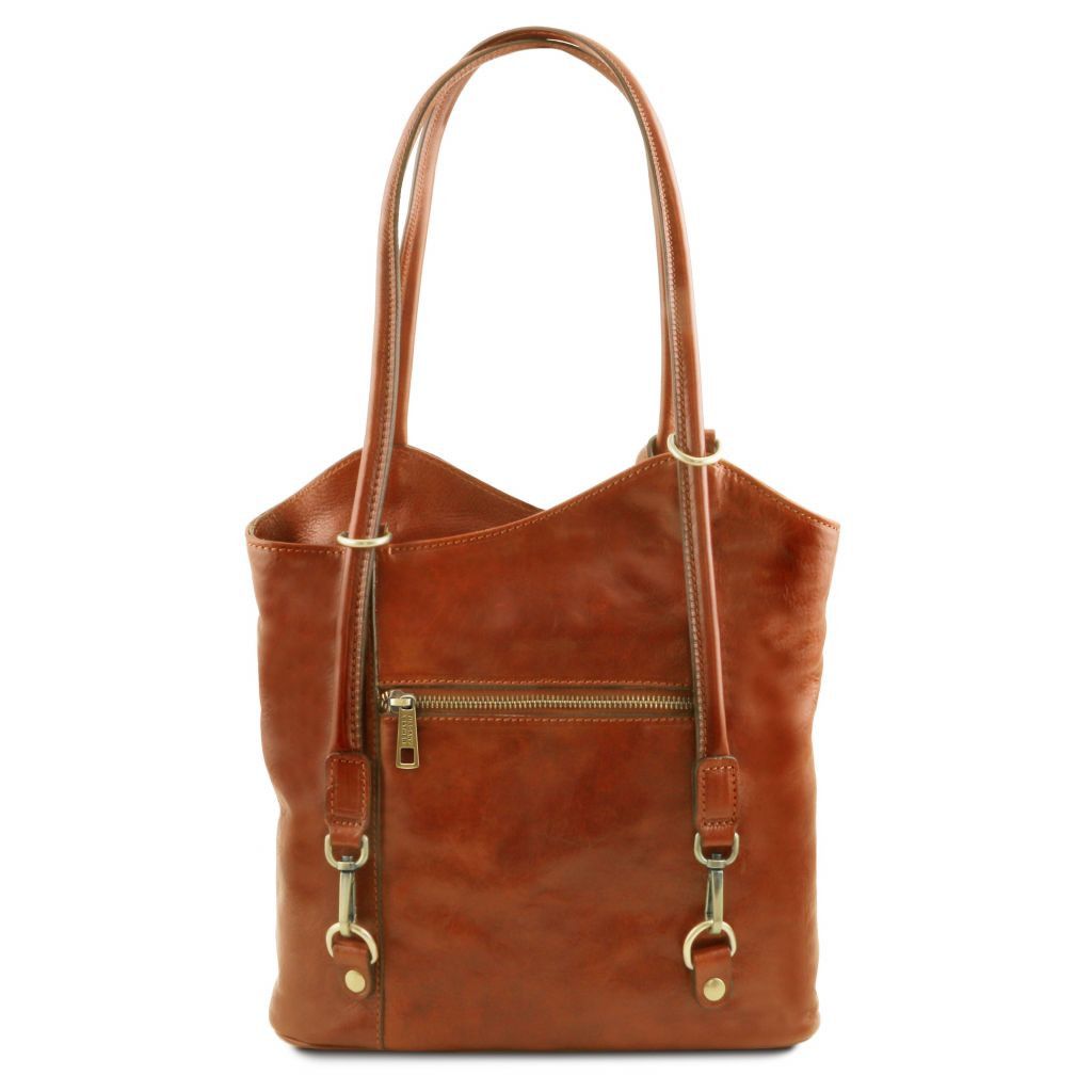 Tuscany Leather Patty är en exklusiv ryggsäck och toteväska i ett, tillverkad i full grain vegetabilgarvat läder som handfärgats för att framhäva materialets naturliga struktur. Den semirigida konstruktionen ger väskan en stabil form med en elegant finish. Hårdvara i antik mässings- och silverton kompletterar designen på ett sofistikerat sätt, vilket gör Patty till en stilren följeslagare för både arbete och fritid.