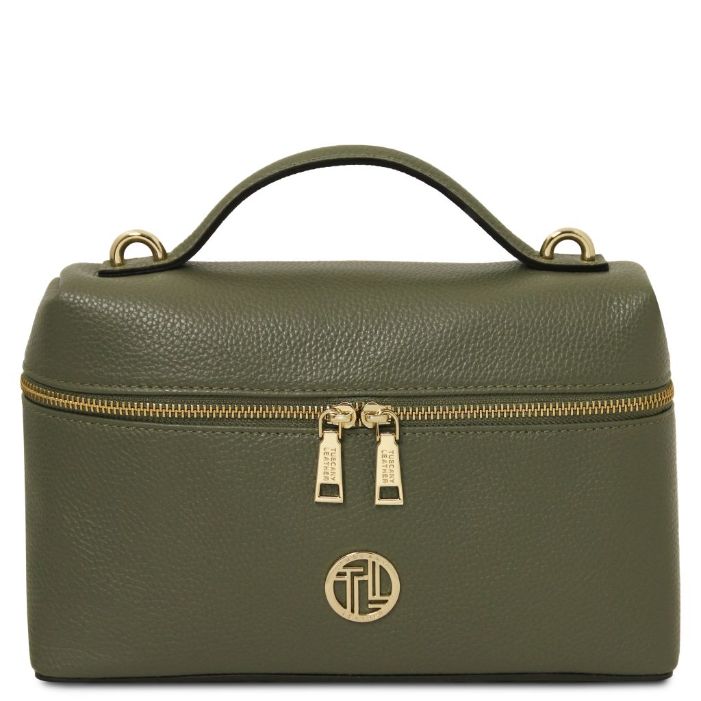 Tuscany Leather Scrigno är en elegant axelremsväska tillverkad i pebble-grain-läder med en semirigid struktur som kombinerar stil, form och funktion. Den sofistikerade designen lyfts av guldfärgade detaljer, präglad logotyp och subtila proportioner som skapar en klassisk men modern look. En perfekt accessoar för dig som vill bära en elegant väska i smidigt format.
