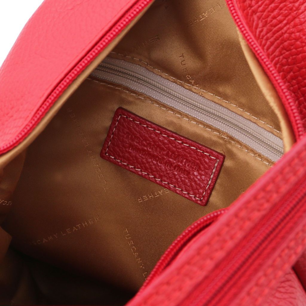 Tuscany Leather Shanghai är en stilfull ryggsäck tillverkad i pebble-grain-läder med en mjuk struktur som ger en elegant och avslappnad känsla. Den sofistikerade designen förstärks av silverfärgade detaljer och den diskreta metalloggan på framsidan. En tidlös modell som kombinerar italiensk kvalitet med praktisk funktionalitet för vardagen.