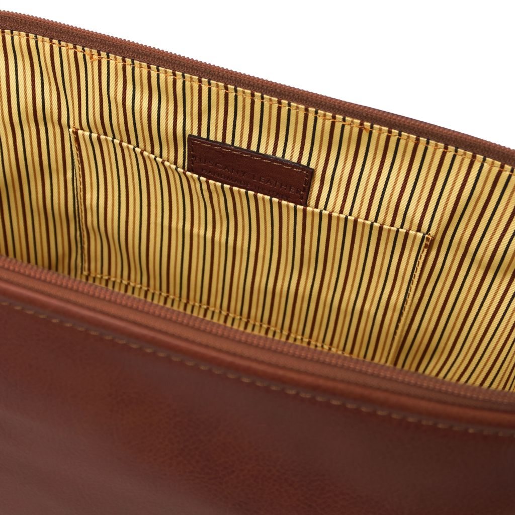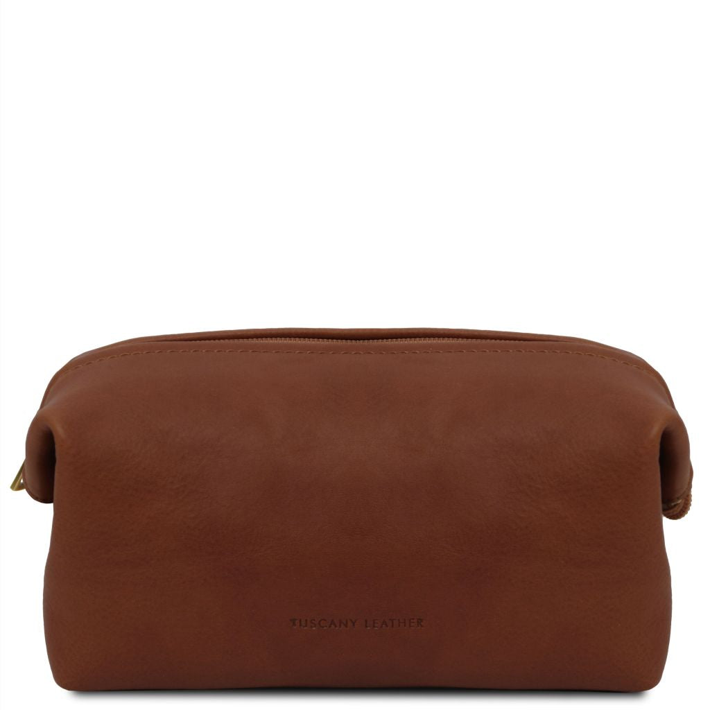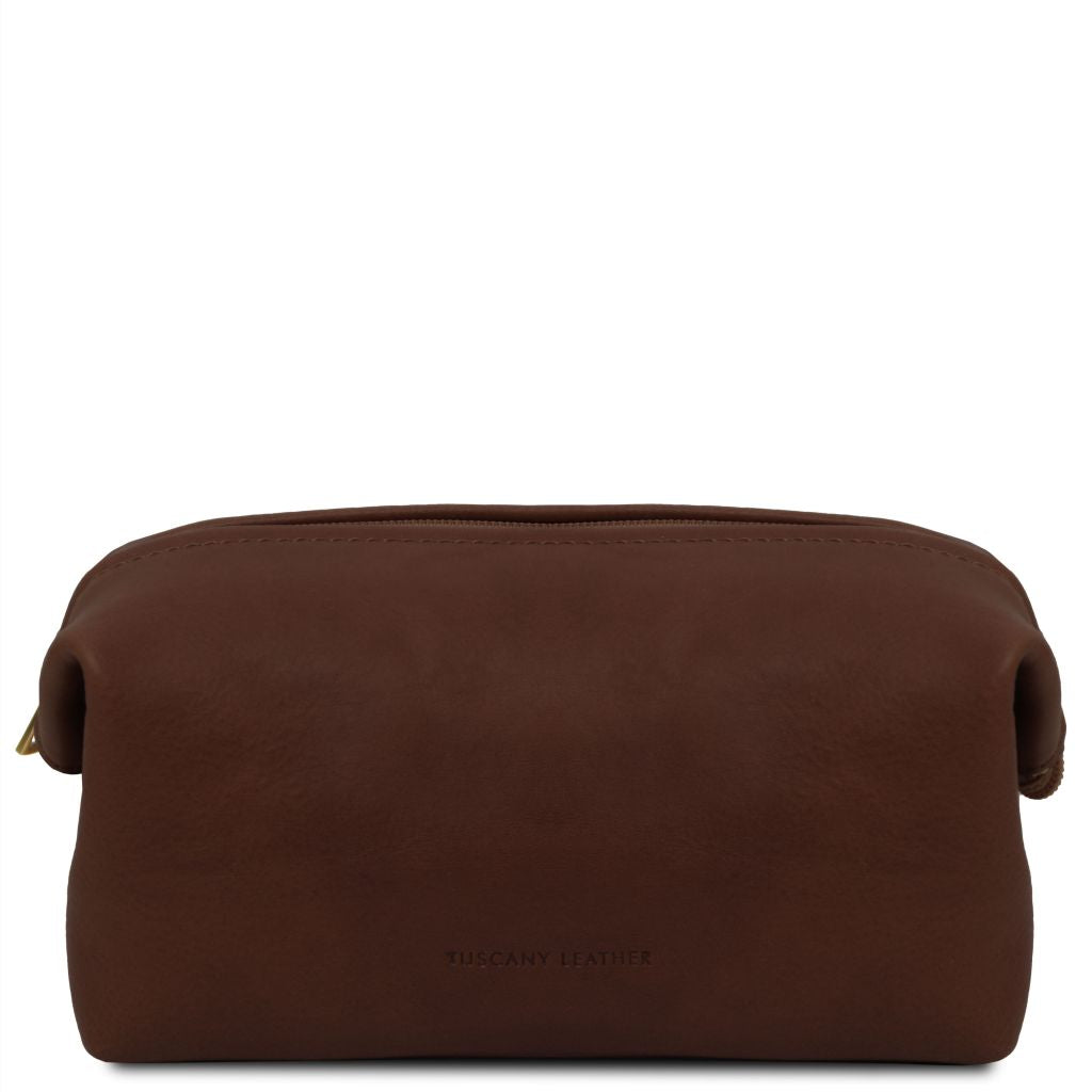 Tuscany Leather Smarty Small är en elegant necessär tillverkad i matt full grain-läder som handfärgats med vegetabilisk garvning. Den semirigida strukturen bevarar formen samtidigt som den mjuka ytan ger en exklusiv känsla. Präglad logotyp och metallbeslag i borstad mässing förstärker den tidlösa designen.