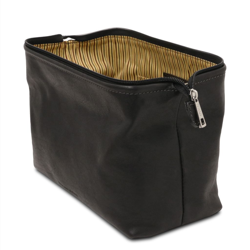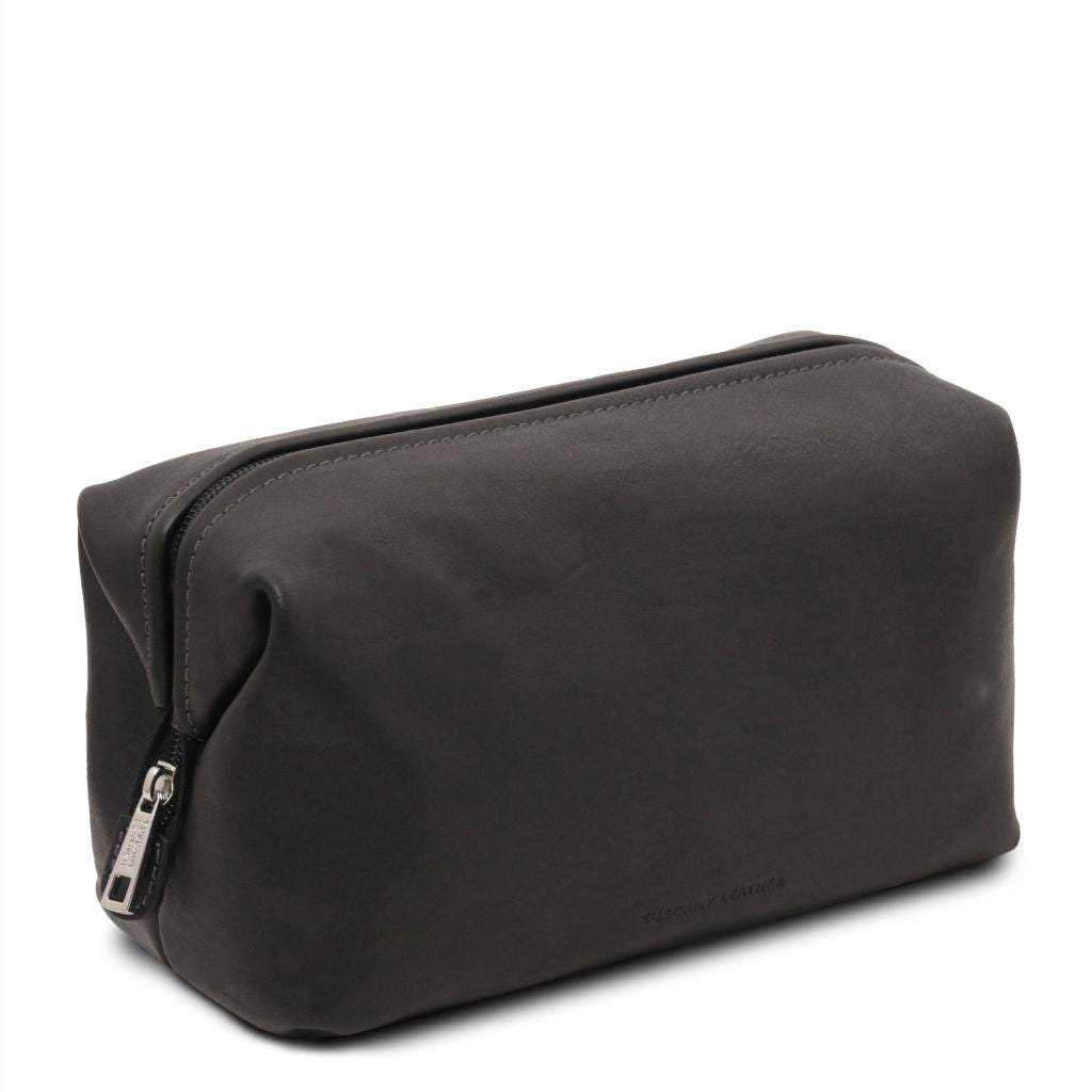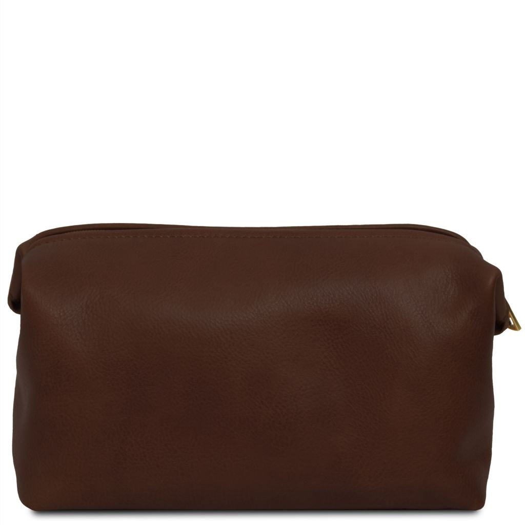 Tuscany Leather Smarty Large är en elegant necessär tillverkad i matt full grain-läder som har handfärgats med vegetabilisk garvning. Den semirigida konstruktionen ger väskan en formstabil karaktär, medan den naturliga läderytan och präglade logotypen skapar en tidlös och sofistikerad look. Perfekt för både resa och vardag.