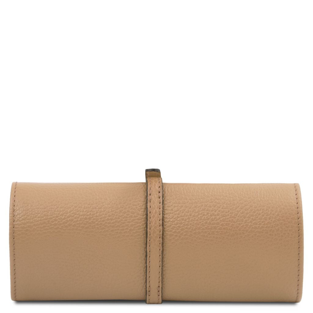 Tuscany Leather Soft Leather Jewellery Case är en sofistikerad smyckesförvaring tillverkad i pebble-grain-läder med mjuk struktur. Den eleganta designen kombinerar praktisk funktion med exklusivt italienskt hantverk, vilket gör den perfekt för både resor och förvaring hemma. Guldtonad hårdvara och präglad metallogo ger ett lyxigt och tidlöst intryck.