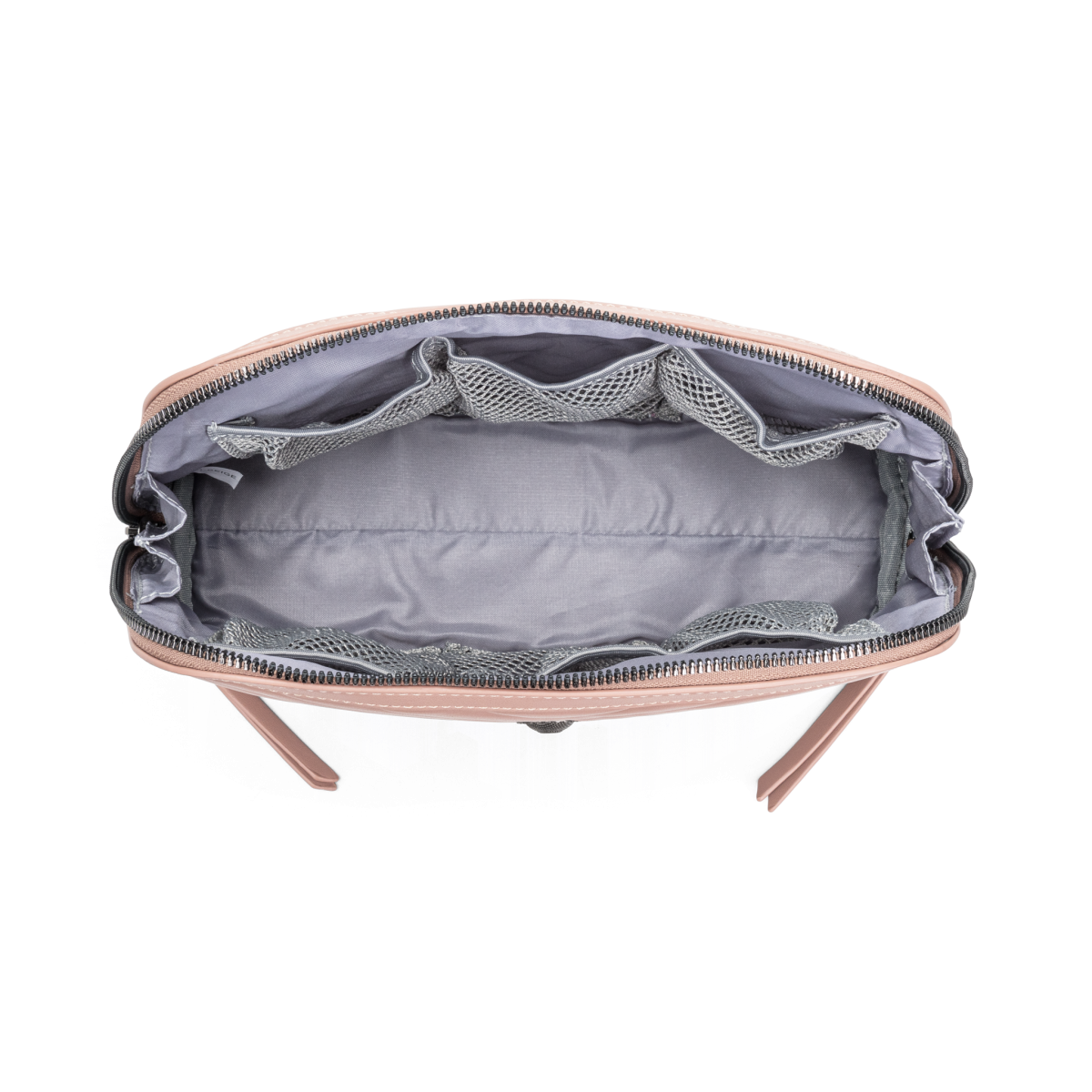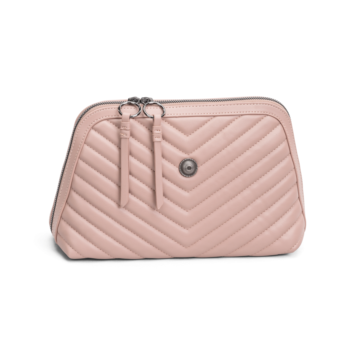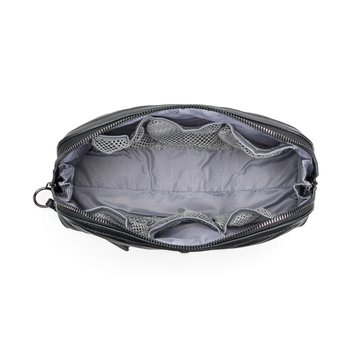Med en smart öppning är denna necessär lätt att överblicka, vilket gör det enkelt att hitta dina produkter. Insidan är utrustad med sex invändiga meshfickor som hjälper till att organisera flaskor, smink och tillbehör. Det avtorkbara nylonfodret gör den både praktisk och hygienisk.